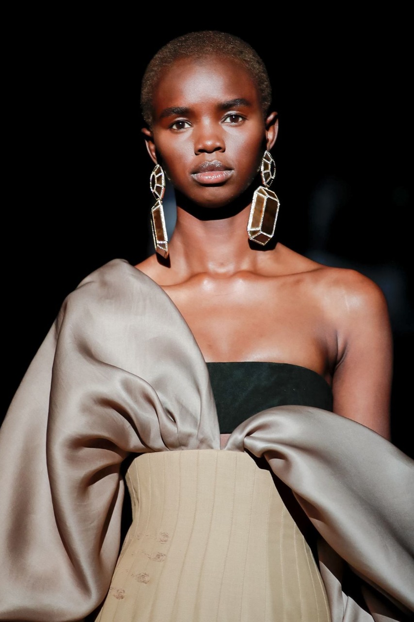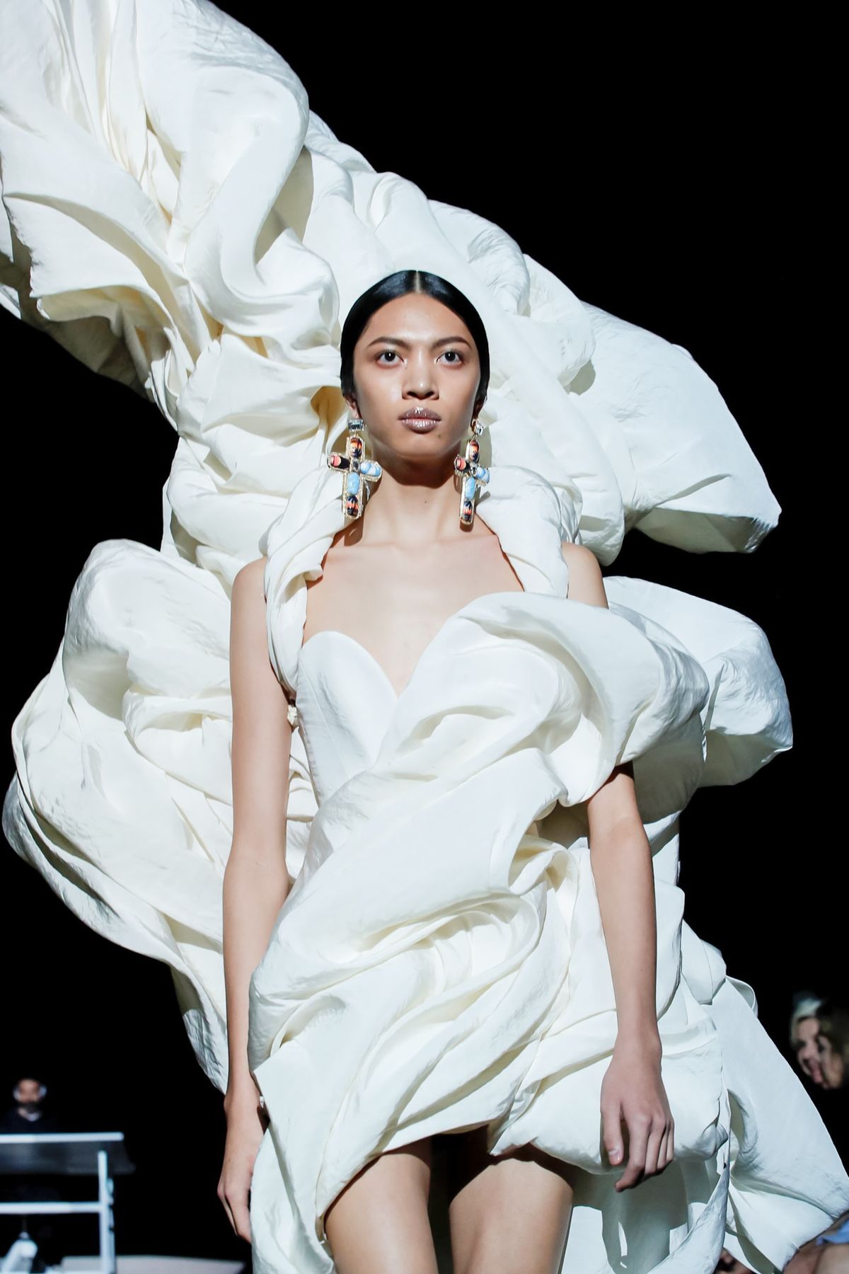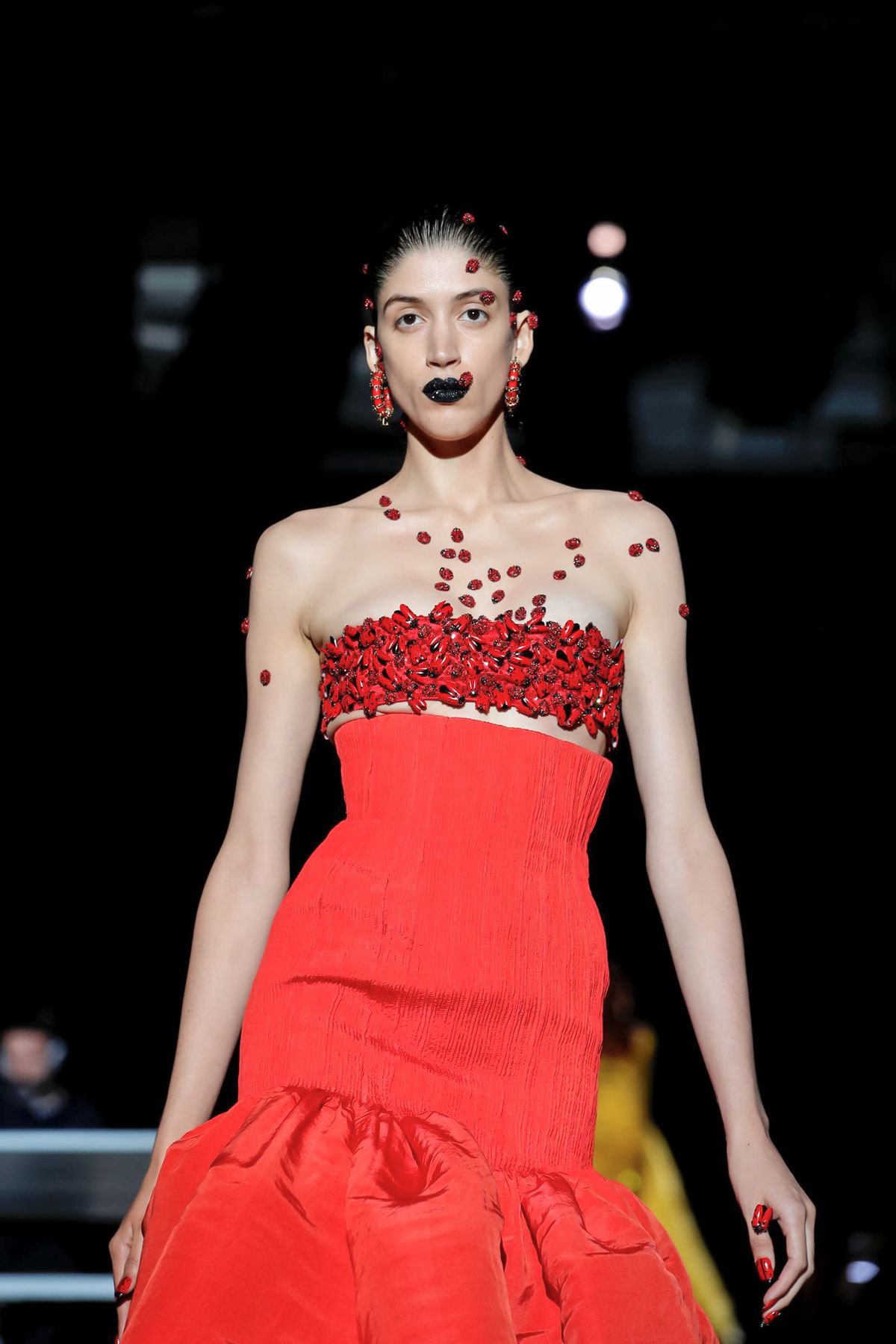 A Schiaparelli acaba de apresentar seu inverno 2020, em Paris. O desfile de alta-costura dá início ao segundo dia de desfiles, com algumas estampas, bordados e silhuetas volumosas. Em meio aos looks, o diretor criativo da label Daniel Roseberry fez sua estreia com maestria. Ele se sentou em uma mesa para desenhar croquis, fazendo uma performance.