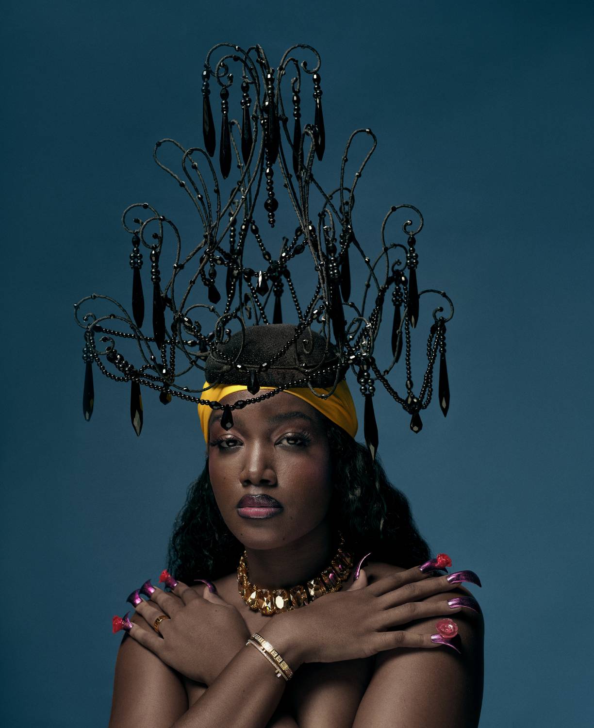 Headpiece Walério Araújo e gargantilha Swarovski – Foto: Edgar Azevedo, com styling de Ode e direção criativa de Kleber Matheus