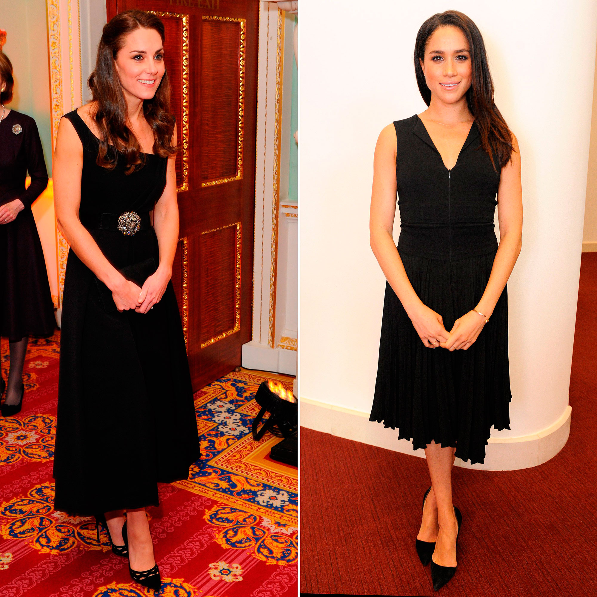 O pretinho básico é aquela peça que todo mundo tem no armário. O comprimento mídi, por sua vez, passeia em qualquer ocasião – do escritório ao evento formal. Kate e Meghan adoram o modelo e costumam usá-lo com escarpins.