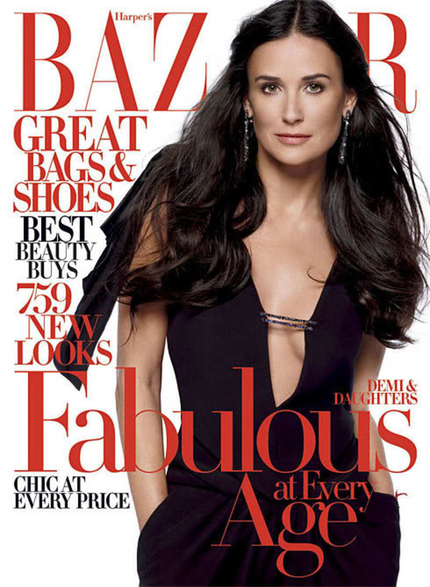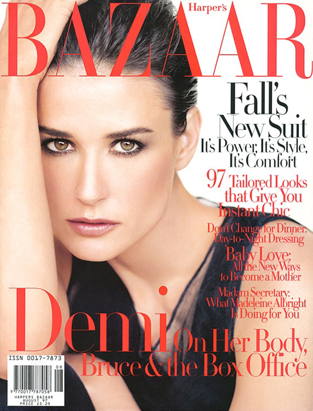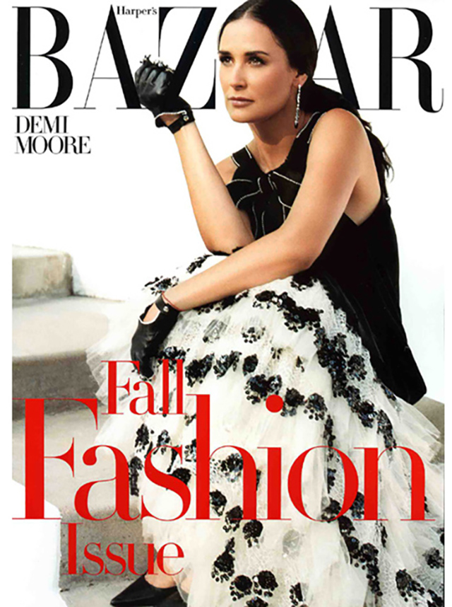 Musa e ícone do cinema, Demi Moore comemora 56 anos neste domingo (11.11) e para homenageá-la, separamos as sete melhores capas da atriz na Harper’s Bazaar. Fashionista nata, a americana fez filmes como “Ghost”, “Proposta Indecente” e “Assédio Sexual”. Ela foi casada com o ator Bruce Willis por 13 anos, e juntos tiveram três filhas: Rumer, Tallulah Belle e Scout LaRue Willis. Seu casamento com Ashton Kutcher, 16 anos mais novo, foi polêmico, e acabou em 2013. A atriz já foi capa e recheio de inúmeras capas de revistas de moda e é queridinha de grifes como Missoni, Tom Ford e Yves Saint Laurent.