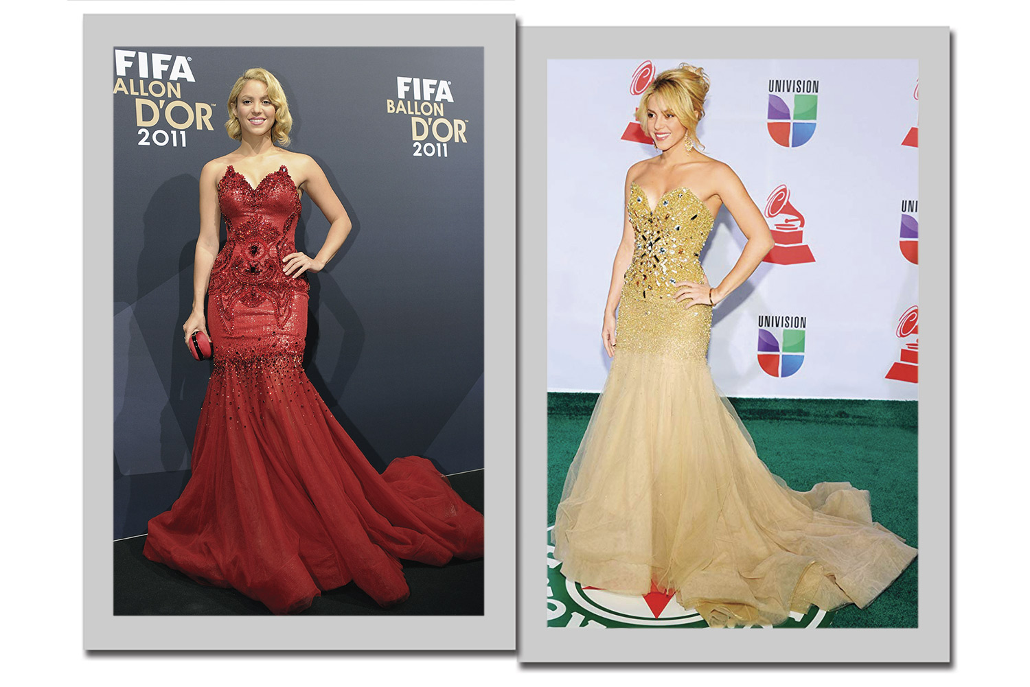 4. O modelo sereia é um must para a cantora! Com as curvas latinas de Shakira, o corte do vestido é ideal para valorizar a silhueta. O tomara que caia também é um tipo de decote que valoriza o colo e adiciona feminilidade ao look.