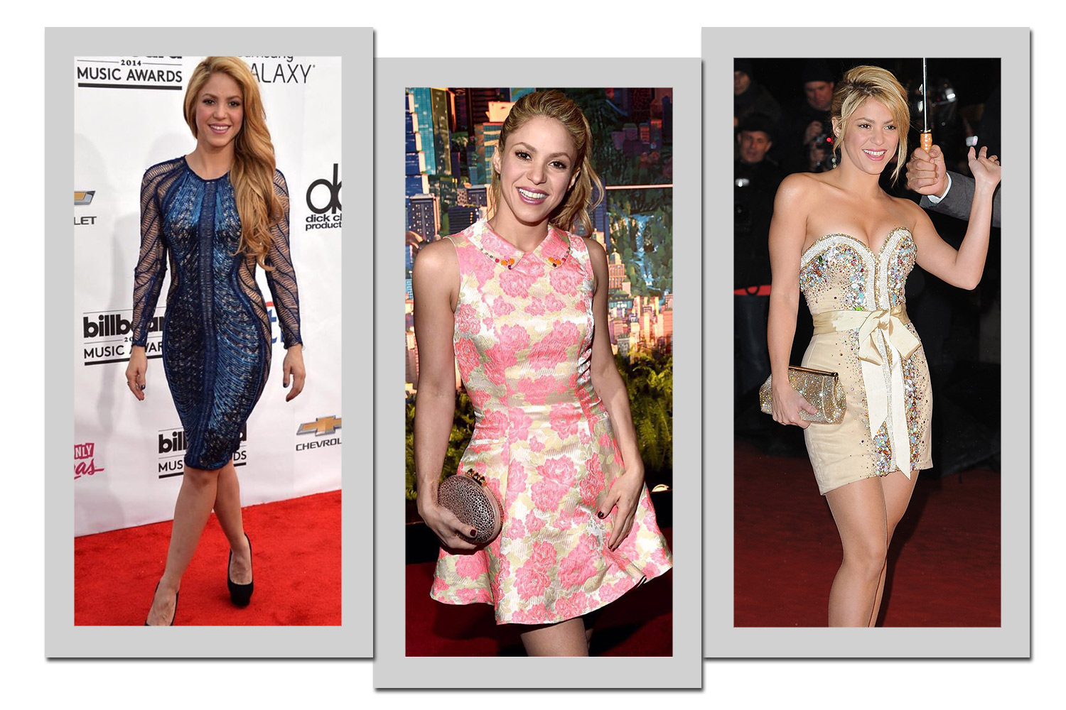 1. Shakira não dispensa o dourado! Seja nos palcos, no dia a dia ou para ocasiões de gala, ela abusa do metalizado.