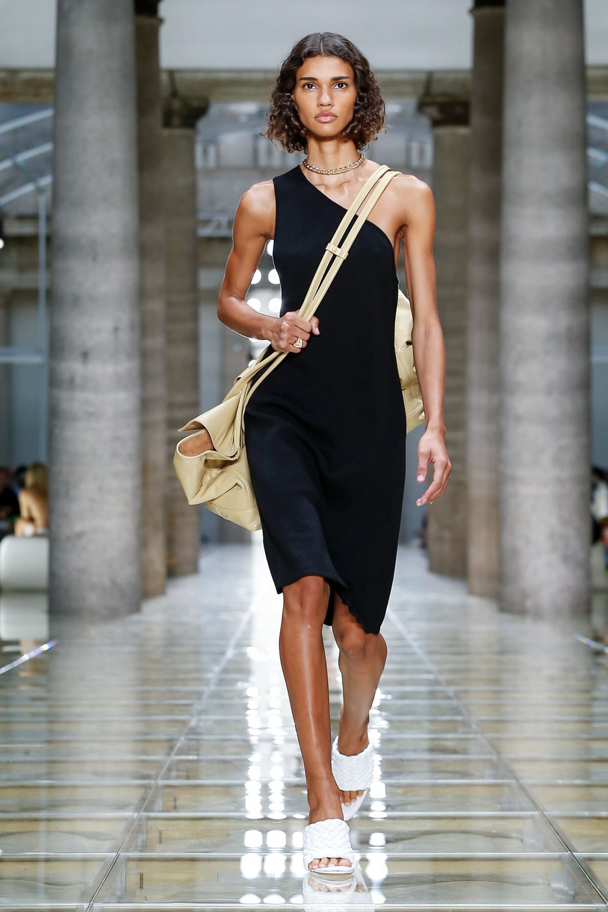 Bottega Veneta apresentou uma coleção chique e up to date. O all black assimétrico é um must-have.