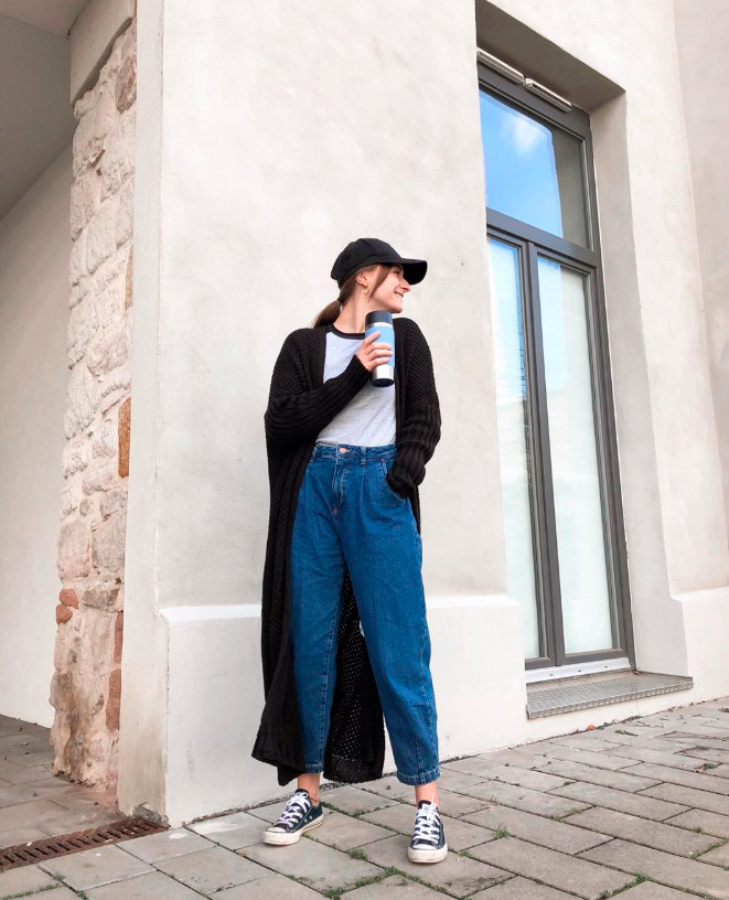 Além de ficar bem com a calça slouchy jeans, a temporada de outono tem como uma forte aliada o tricô. Truque de styling: escolha uma blusa igualmente larguinha e use por dentro da calça.