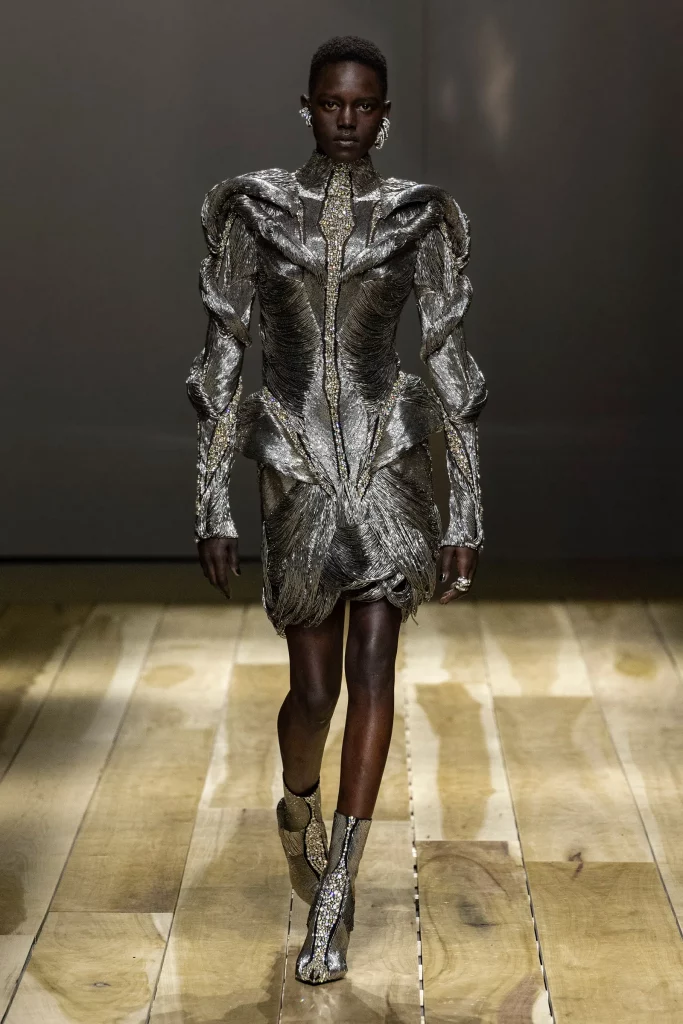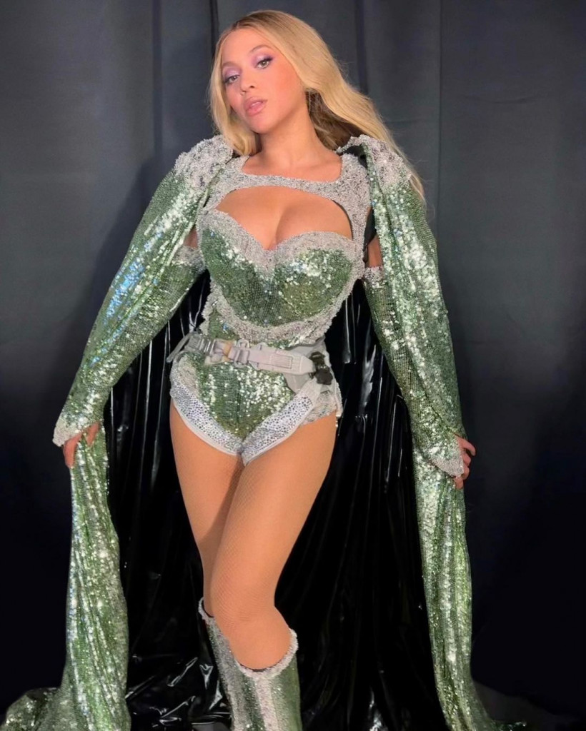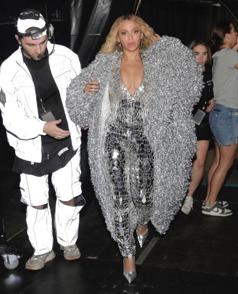 Além disso, a Queen B não deixa barato ao apostar em uma enorme variedade de peças prateadas. Entre os destaques, citamos a capa gigante assinada pela Coperni, cuja cauda sobrevoa os estágios quando ela (literalmente) voa pelo show, ou as botas com franjas da Miu Miu. E é claro que o nome mais marcante quando o assunto é o tom metalizado não fica de fora do closet da turnê: a Rabanne, uma das principais marcas da Era Espacial, que explodiu na década de 1970.
