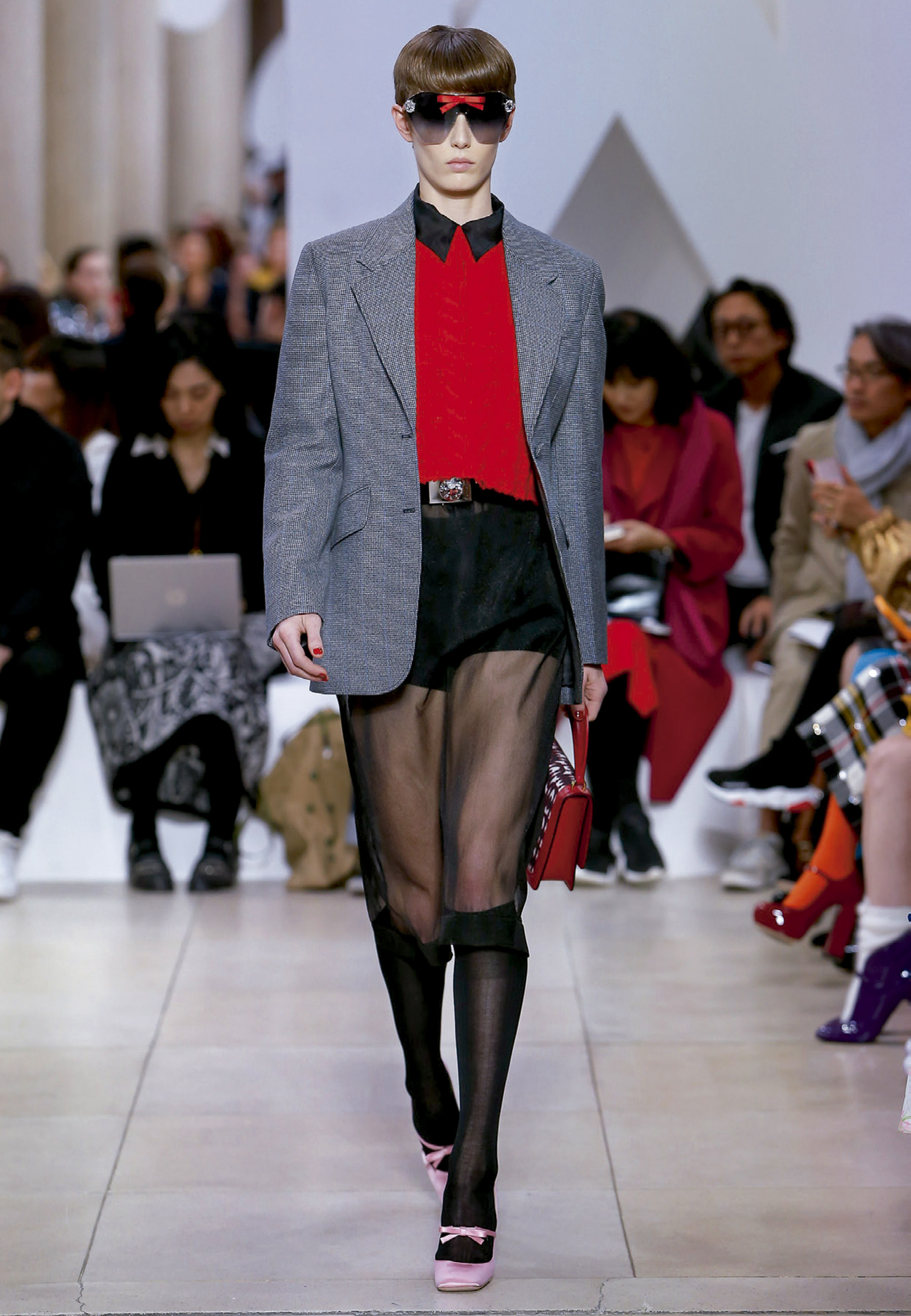 A Miu Miu segue de perto, usando também uma saia translúcida para suavizar outras camadas mais densas. Em sua matemática mais simples, a tendência já está nas ruas. Em dezembro, Victoria Beckham deu empurrãozinho ao cruzar o tapete vermelho do The Fashion Awards 2018 usando vestido longo sobre pantalona. Como resistir?