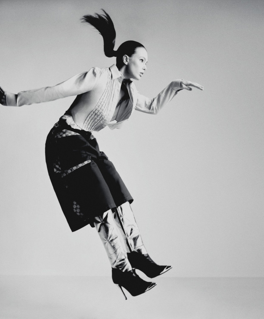 2 / 9Maria Klaumann (Mega Model) usa look total Gucci e botas Lucas Regal – Foto: Ivan Erick, com direção criativa de Camila Bossolan, styling de Marcell Maia e beleza de Daniel Hernandez