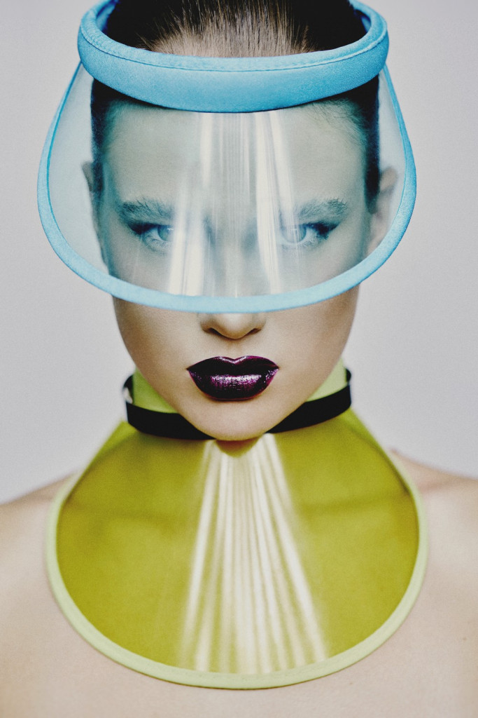 6 / 9Maria Klaumann (Mega Model) usa viseiras do acervo do stylist e colar Caio Vinicius – Foto: Ivan Erick, com direção criativa de Camila Bossolan, styling de Marcell Maia e beleza de Daniel Hernandez