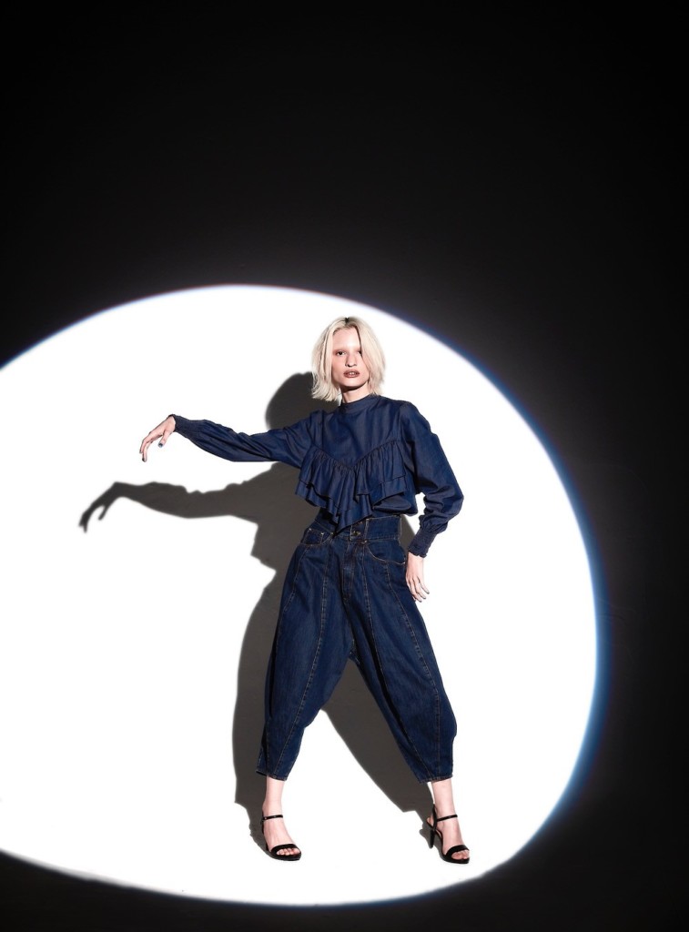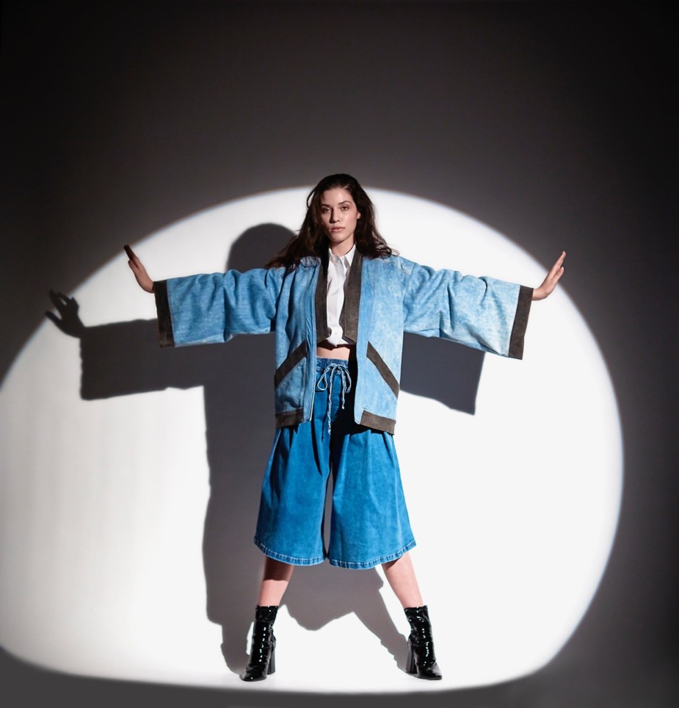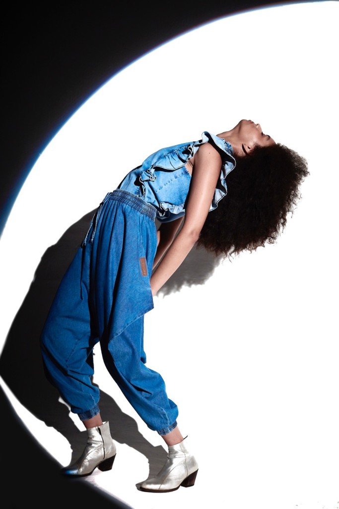 Com vídeo-performance e enfatizando a roupa como expressão, a Amapô apresentou uma coleção inteira feita com denim em tons variados, do mais escuro ao clarinho, sendo boa parte com aspecto rústico vindo de tecidos parcialmente ou 100% reciclados, produzidos com menos água e química. A proposta, contam as estilistas Carô Gold e Pitty Taliani, é ressaltar uma consciência agregada ao produto, que também reflete o momento atual nas modelagens mais amplas e confortáveis.