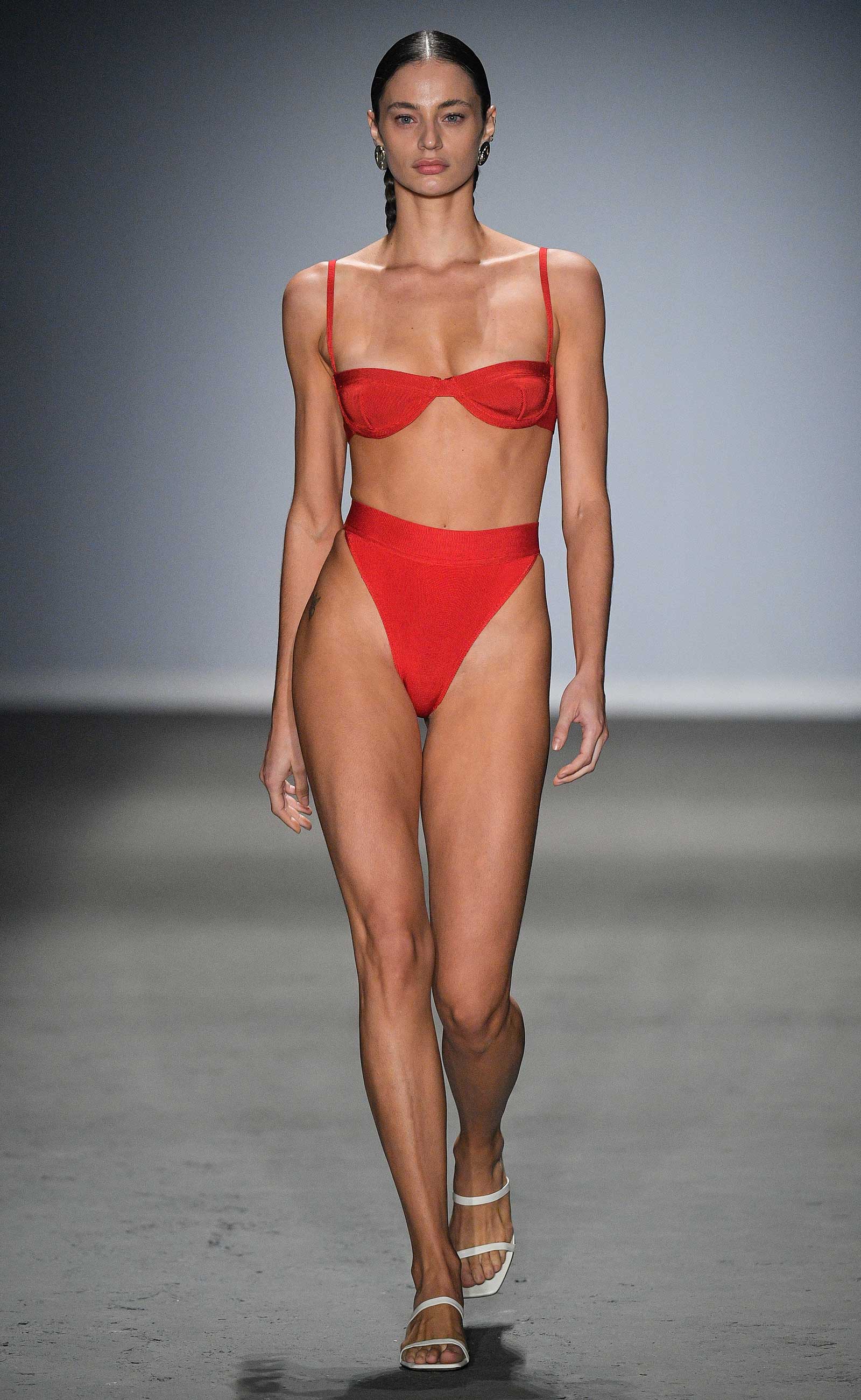 Áries: Vermelho puro é a cor principal associada a este signo, mas branco, preto e bege também são opções. A Haight trouxe esse mix em seu desfile, com maiôs minimalistas que trazem uma modelagem que tem tudo a ver também com o signo.