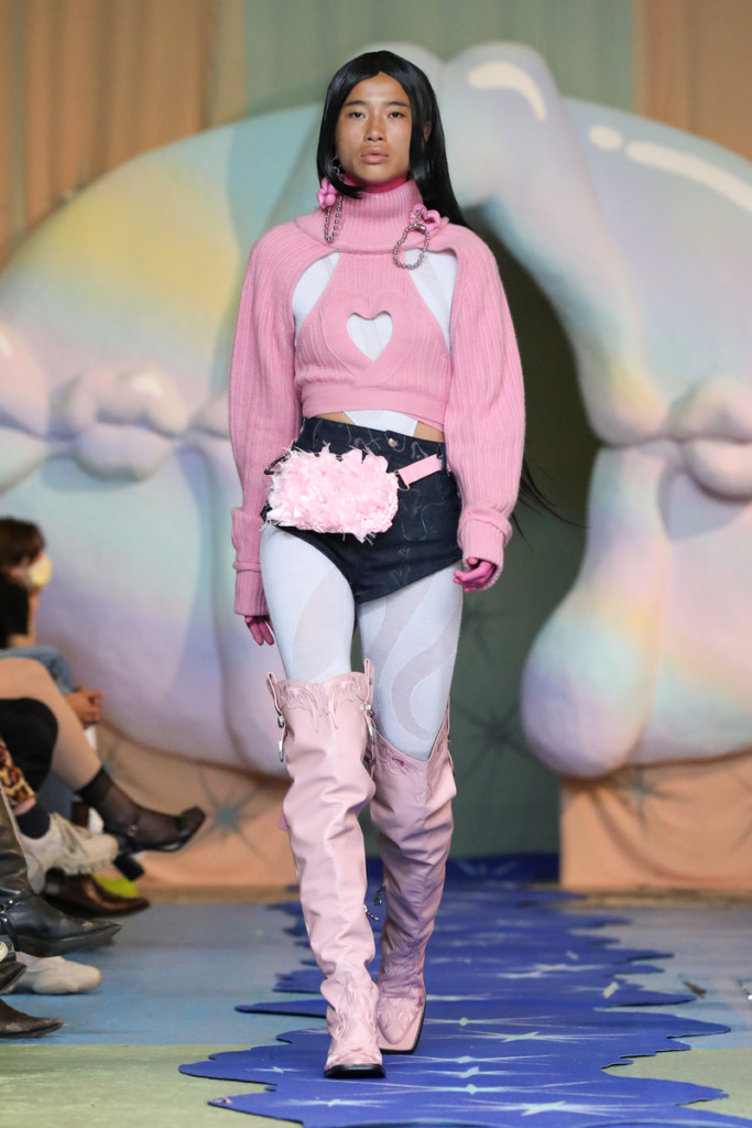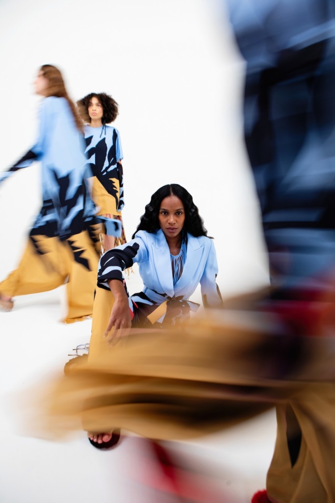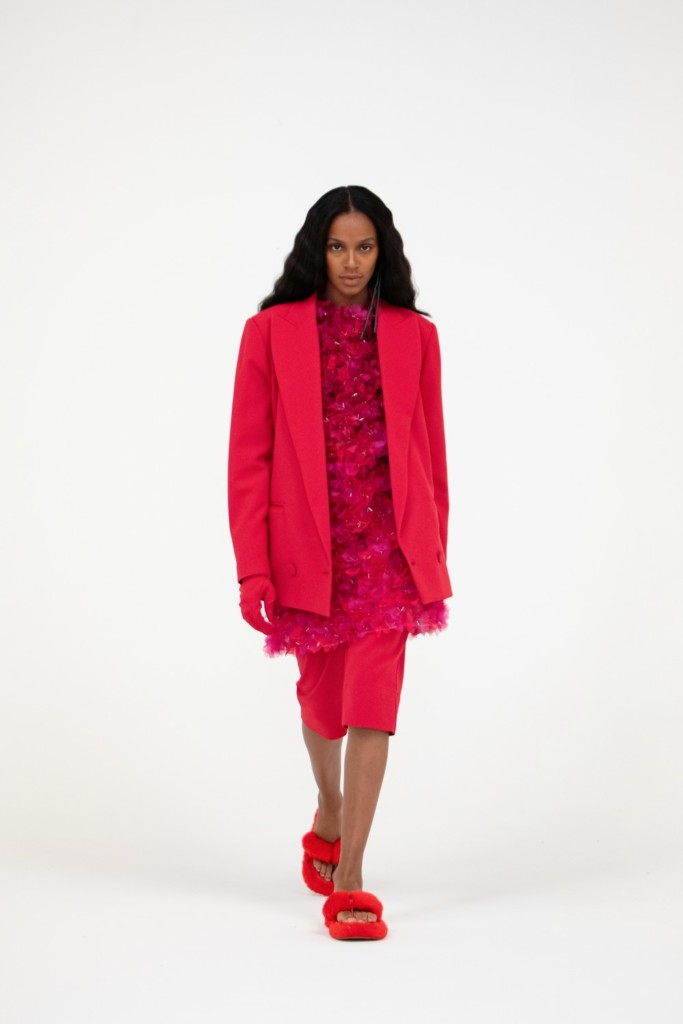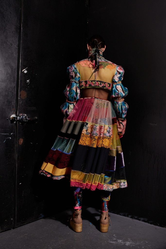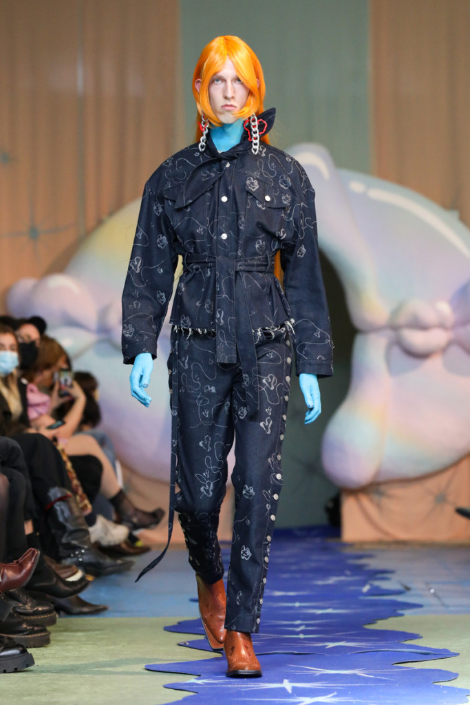 O mix de estampas – feitas de retalhos – e cores são o ponto alto da coleção, ao lado das mangas bufantes de grandes casacos. É possível notar a influência da tão falada geração Z nas calças soltas e de bocas largas, que parecem que voltaram para ficar. Conversando com o mundo atual em diversas formas e jeitos, a marca nos inseriu em um ambiente lúdico do momento sombrio que estamos vivendo, com um toque enérgico e eletrizante dado pela trilha sonora de boate. Espetáculo de desfile!
