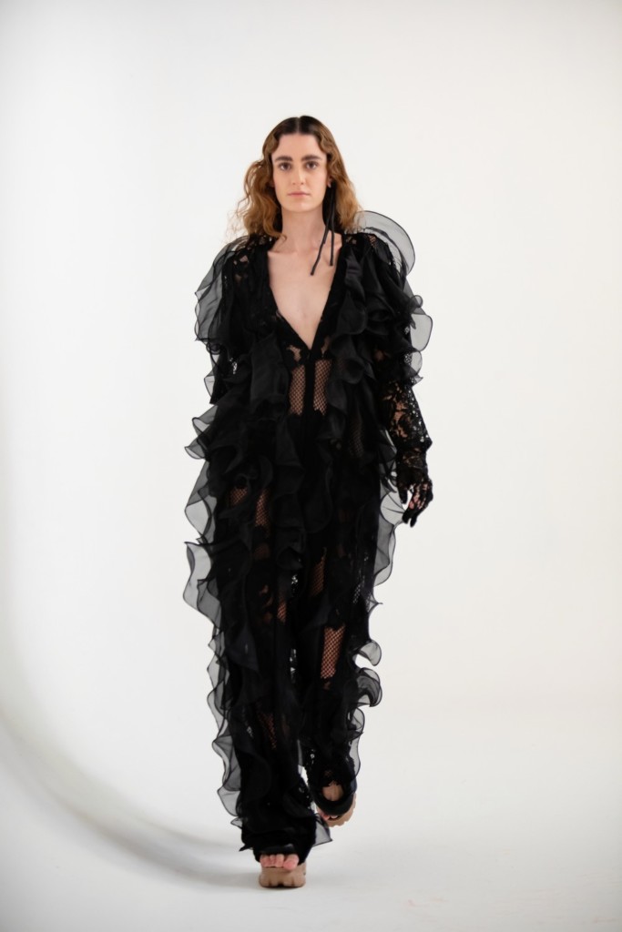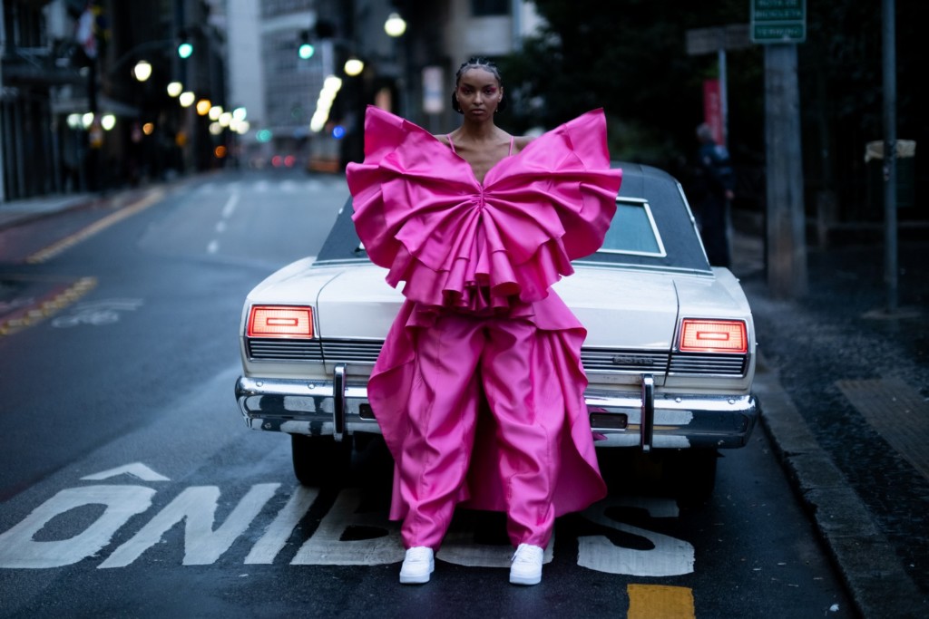 E depois? O tal do “novo normal” de Juliana Jabour é uma festa de extravagância, exuberância e excessos. Realmente precisamos! Volumes vindos de asas angelicais ou da década de 80 – queridinha da label – são o focal point da coleção, que se utiliza de babados em tecidos nobres na construção ultrafeminina.