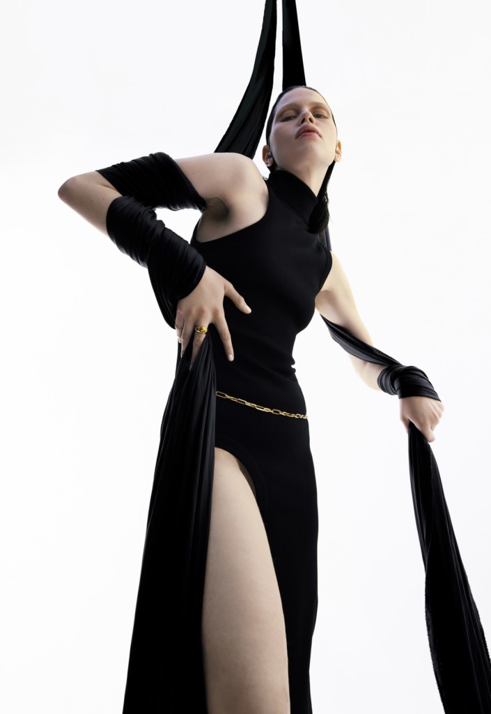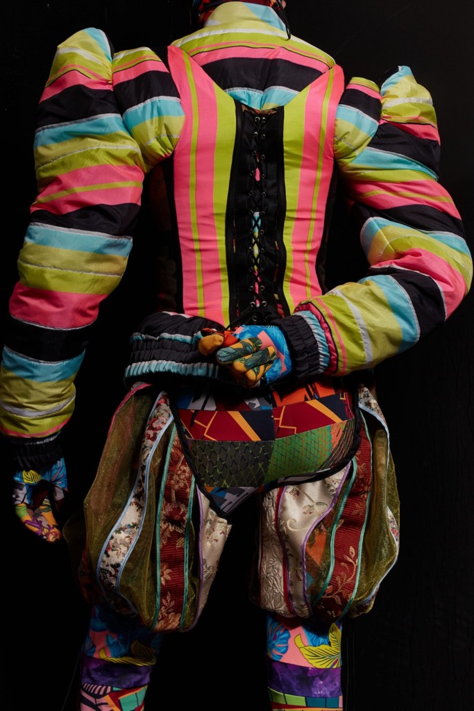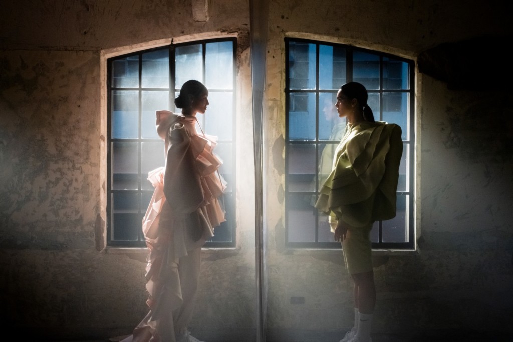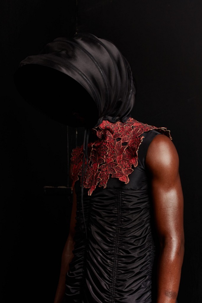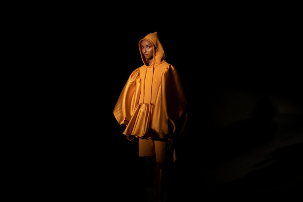 Assim como em sua última coleção, os modelos seguem mascarados. Mas, desta vez, as roupas que cobrem o dorso do peito sobem para o rosto, cobrindo o nariz e a boca como uma espécie de “casulo próprio”, conversando com a individualidade que cada um se insere nos dias de hoje.