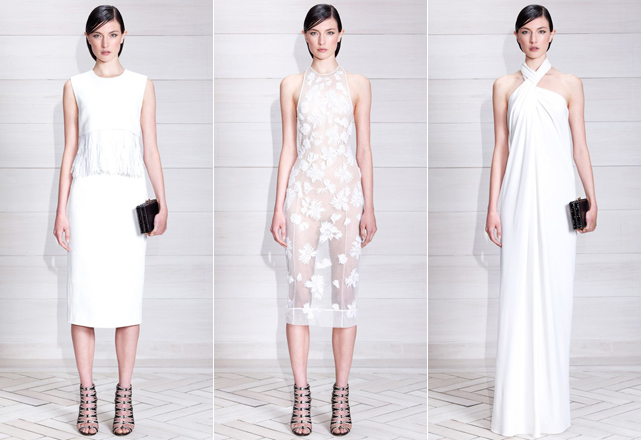 Representante do sportswear que permeia a moda americana, Jason Wu apresentou uma bela coleção resort. De modelagem slim, as saias com a barra cortada logo abaixo do joelho ganham leveza quando combinadas a cropped tops e busties. “É tudo sobre a textura”, explica o estilista, fazendo referência ao mix de tecidos que permeia a coleção; estão por lá peças de algodão, tweed, jeans de uma leveza única e até longos de ceda. Destaque também para a estampas tropicais bordadas com pequenos paetês. Must Have!