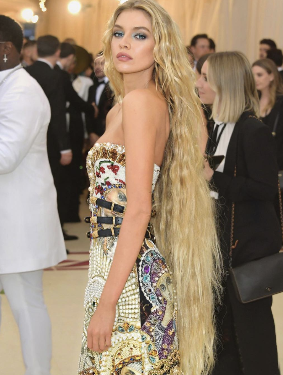 O cabelo longo de Stella Maxwell é uma marca registrada. Com o estilo de cabelo sereia, os fios loiros da modelo constroem o visual sexy que é desejado por milhares de seguidores.
