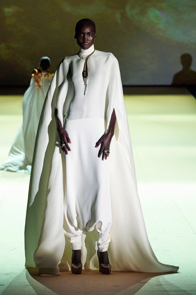 PM: Foi um projeto ambicioso, que durou meses. Trabalhamos com os alunos para que eles tivessem como guia a inspiração de Stéphane para essa coleção [o deserto e os cenários áridos do Oriente Médio], mas que pudessem emprestar seus próprios olhares nos primeiros dez minutos do show, antes das peças do Stéphane entrarem na passarela. É algo realmente inédito na alta-costura. GDB: uma espécie de diálogo entre um designer estabelecido e a nova geração? PM: Exatamente. Não é uma competição. GDB: e se uma cliente quiser comprar um dos vestidos dos estudantes? SR: Será ótimo! É a nossa esperança. Para nós, é uma forma de trazer luz para esses novos criadores, que representam parte do futuro da moda. O nosso mundo está mudando cada vez mais. Por isso, é preciso ter visões inovadoras, diferentes daquilo que já existiu. É assim que a moda e especialmente, a alta-costura vão sobreviver.