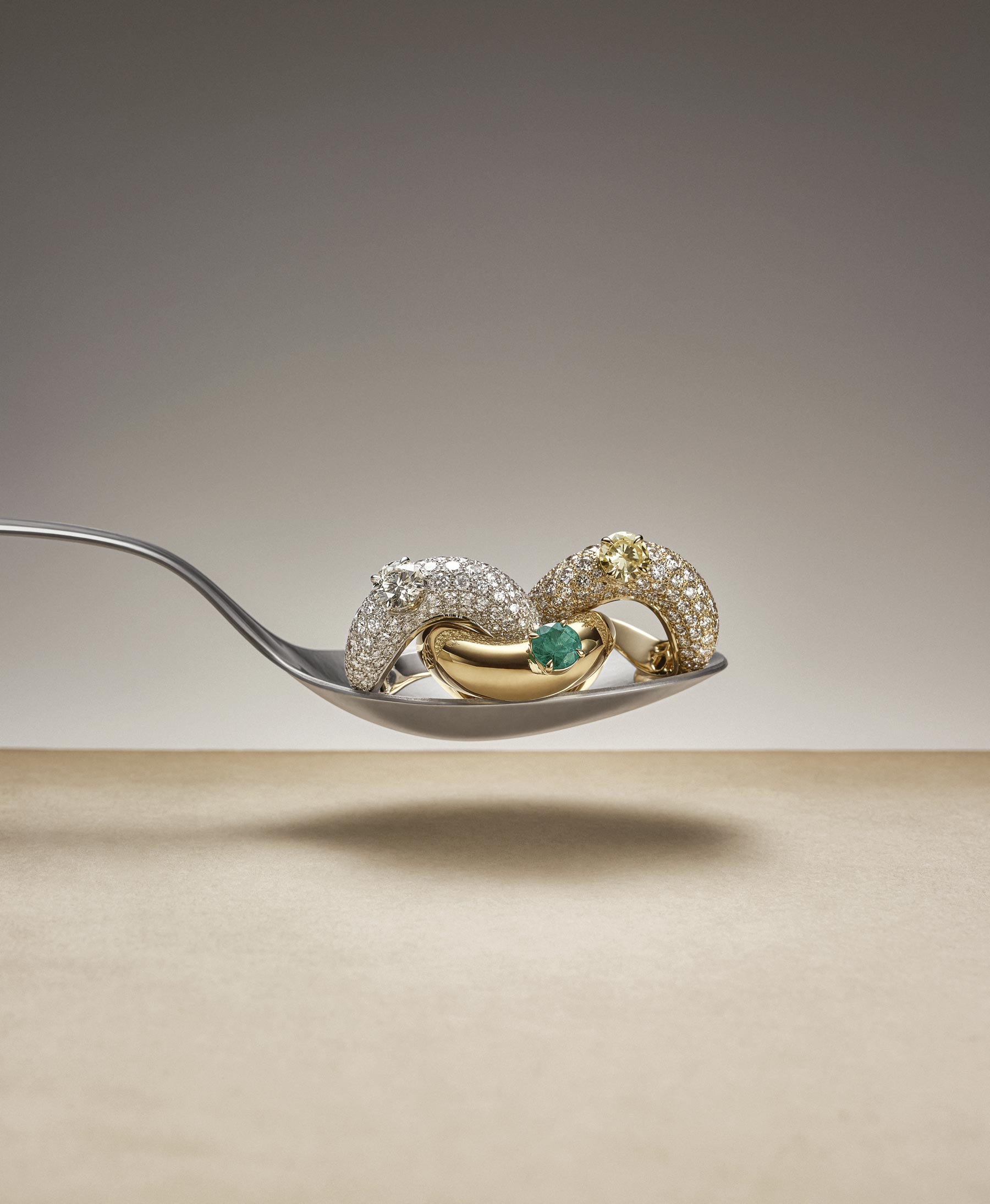 E de herança familiar. Jules, seu avô por parte do padrasto Daniel Sauer, foi quem fez a esmeralda brasileira ganhar laudo e status internacionais, graças à sua visão futurista e empreendedora do negócio. Fugido do nazismo na Europa nos anos 1930, desembarcou no Brasil por acaso e abriu sua primeira loja nos anos 1950 no Rio de Janeiro. Stephanie, herdeira da visão vanguardista de Jules, celebra sua vigésima coleção e lança a épica “N20”, recheada de clássicos com olhar contemporâneo. Explorando formas orgânicas e resgatando materiais usados em suas primeiras colaborações, como o cristal de rocha e a turmalina paraíba, a mistura de gemas é deliciosa. Diamantes, safiras e tanzanitas surgem ao lado de lápis-lazúli e ônix. “Uma ideia nasce da contemplação de uma joia da natureza. A partir de sua dimensão viajamos em todas as possibilidades, lapidando para transmutar um mineral em verdadeira obra de arte.”