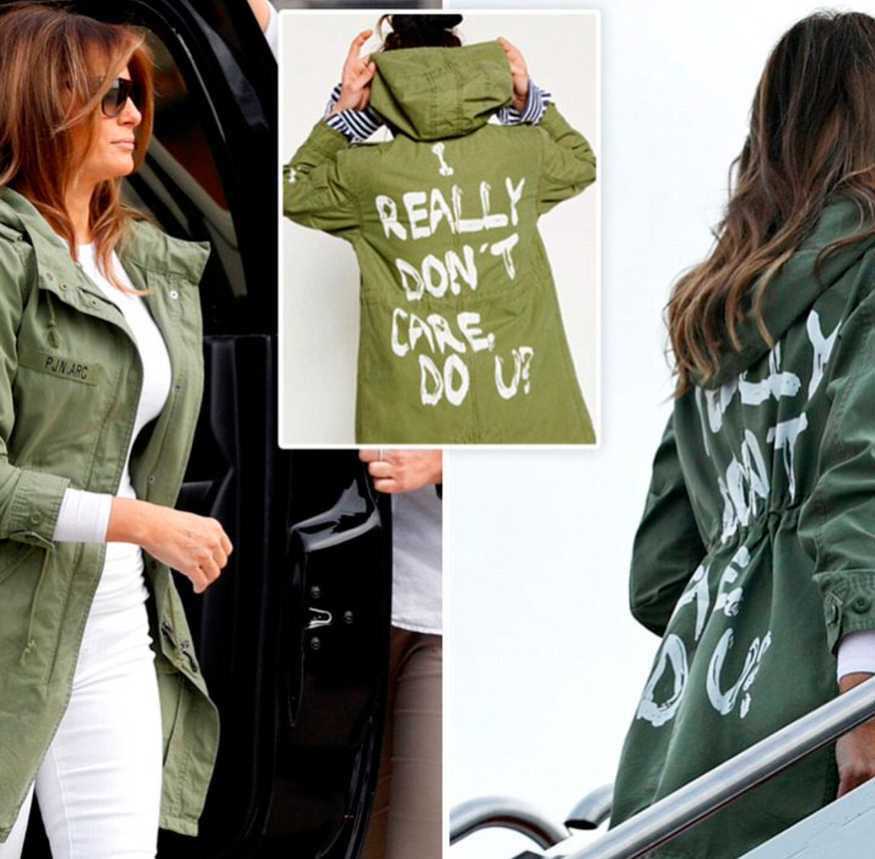 A jaqueta que Melania Trump usou na quinta-feira (21.06) ainda está rendendo debate na internet. A primeira-dama dos EUA escolheu uma peça da Zara para entrar no jato particular que a levou até as crianças “punidas” por Trump e que chocaram o mundo com suas lágrimas e gritos aflitos chamando pelos pais, exibindo ao mundo uma parka com a frase: “I really don’t care do u?” (“Eu realmente não me importo, e você?”, em tradução livre).