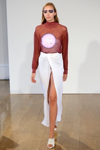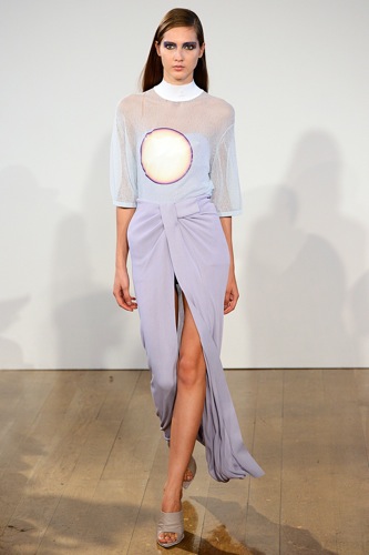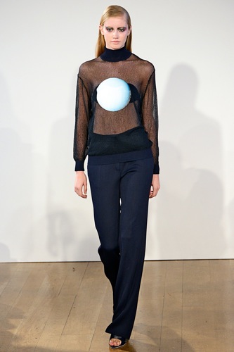 Lucas Nascimento buscou inspiração nos planetas para criar sua coleção de verão 2013, que pela primeira vez apresentou estampas. O designer brasileiro, expert em tricô, decidiu explorar as diversas técnicas e shapes possíveis do material, com peças tão bem trabalhadas que nem pareciam que eram de malha.