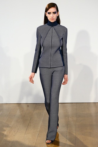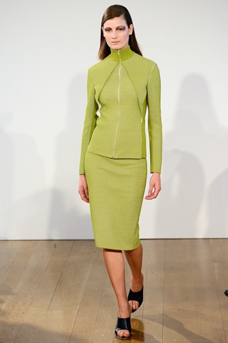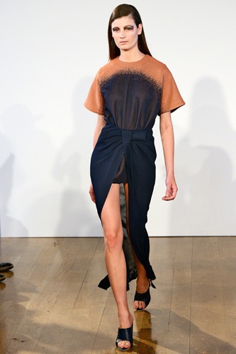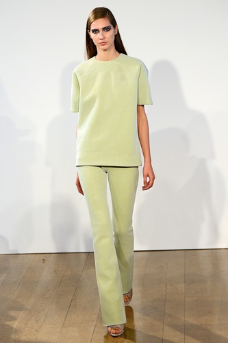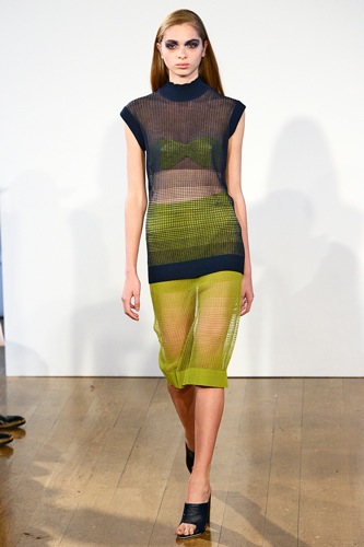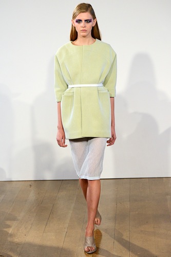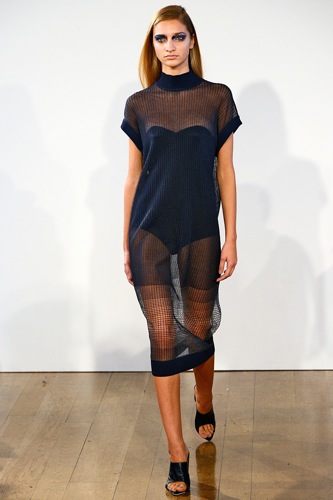 Sauvidade e rigidez caminham juntas nesta coleção, que traz saias e vestidos com comprimentos diferentes, indo do mini ao maxi, com fendas até as coxas e muitas golas altas, complementadas com tecidos transparentes, revelando os ombros das modelos.