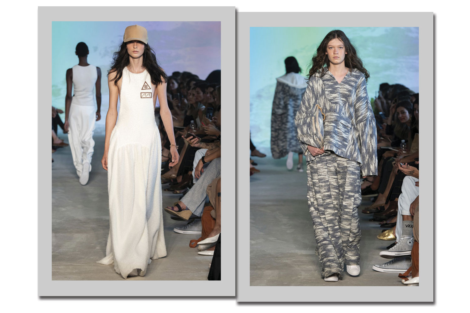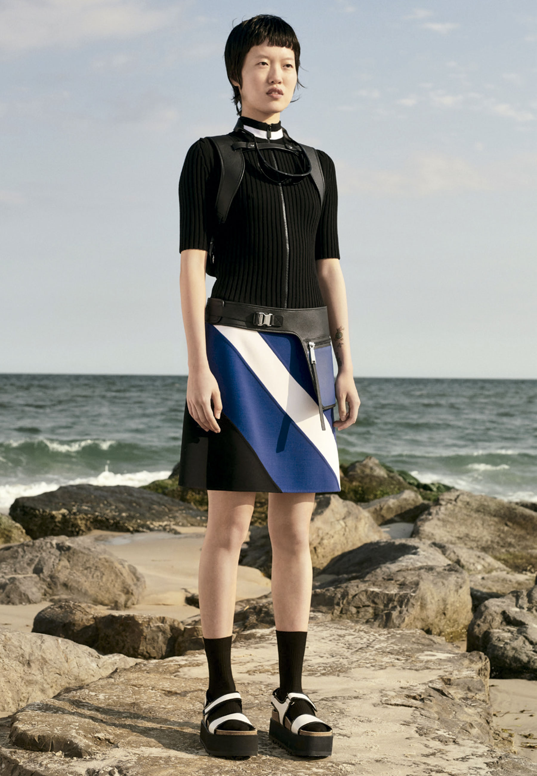 Com ar futurista, Michael Kors e Paco Rabanne apostaram nas combinações de jaqueta e camiseta de manga longa com saia, respectivamente. Nos pés, duas alternativas típicas praianas: sandálias com meias e clogs. Como pano de fundo para as imagens, o mar.