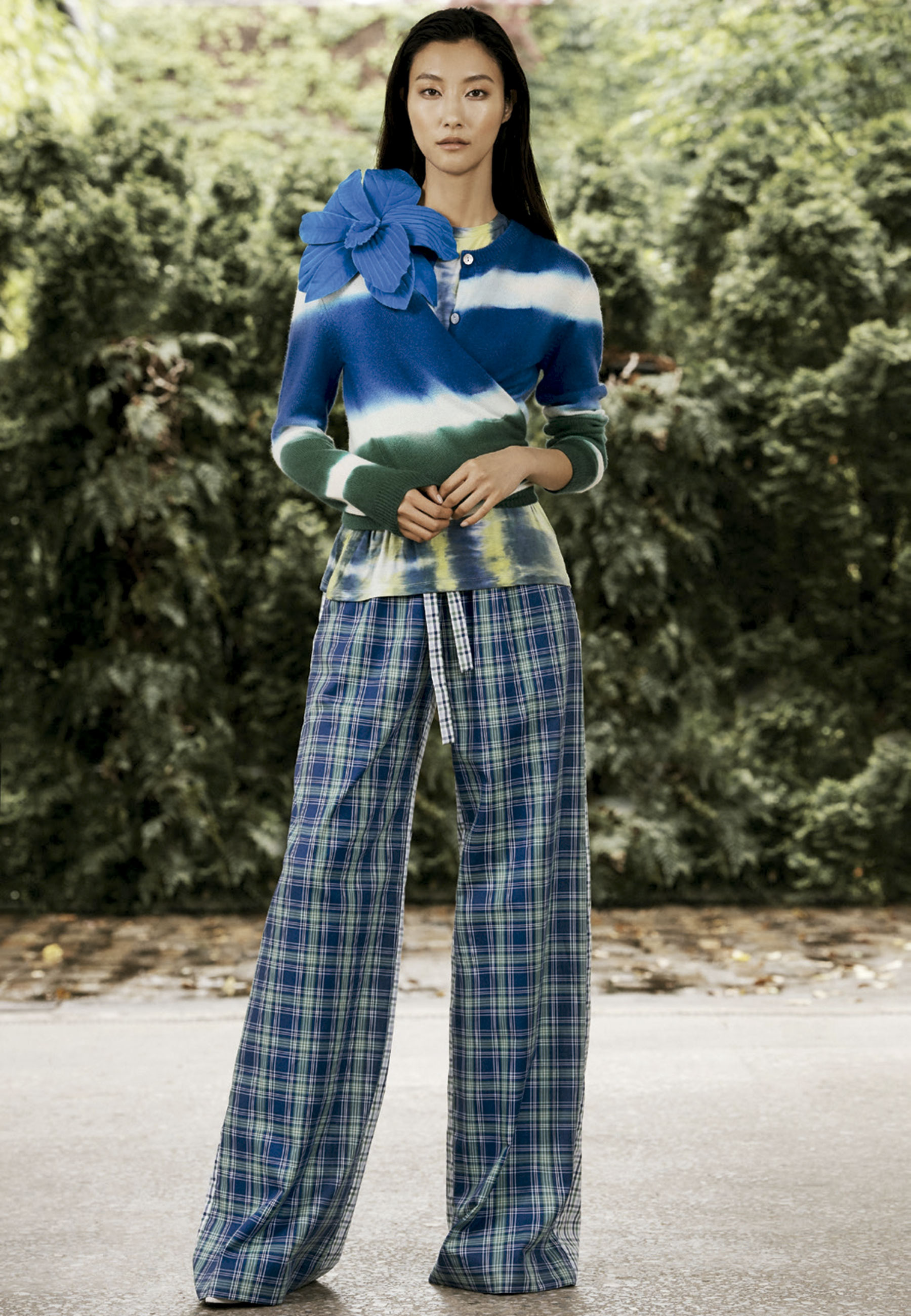 Mesmo tendo referência hippie na origem da estampa, Prabal Gurung foi a Katmandu, no Nepal, e usou as boas vibrações do destino zen para desenvolver itens coloridos, com um quê surfer. Camisetas e suéteres de cashmere em tie dye encontram calças com modelagem de alfaiataria e ganham aplicações de flores de hibiscos (motivo clássico nas bermudas dos surfistas). O contraponto, desta vez, saindo da água, revela caminhos para vestir swimwear, neoprenes e peças que remetem às malhas coladas ao corpo para proteção térmica e melhoram a performance em cima das pranchas.