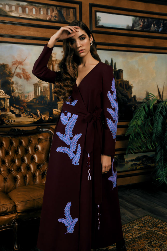 Os requintes de detalhes são visíveis. “Na minha primeira coleção de verão, usei tecidos como linho e seda em mangas bufantes, decotes com borlas artesanais, caftãs. Blusas e vestidos foram bordados com flores e frutas em cores primárias e suaves”, explica. “Me inspirei nas estampas ucranianas do século 19 para os bordados, que são cortados e costurados manualmente, a partir da técnica appliquée.“