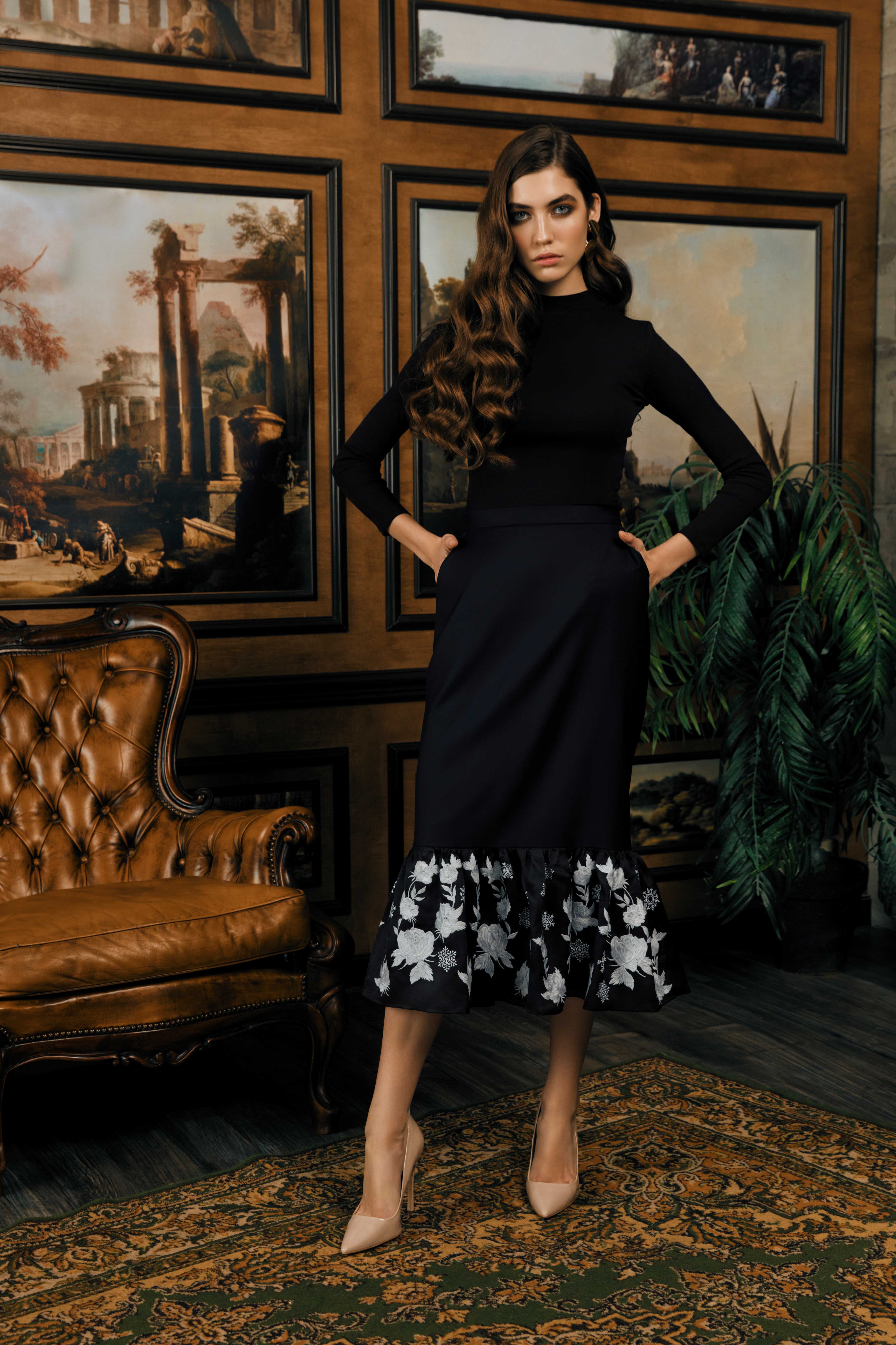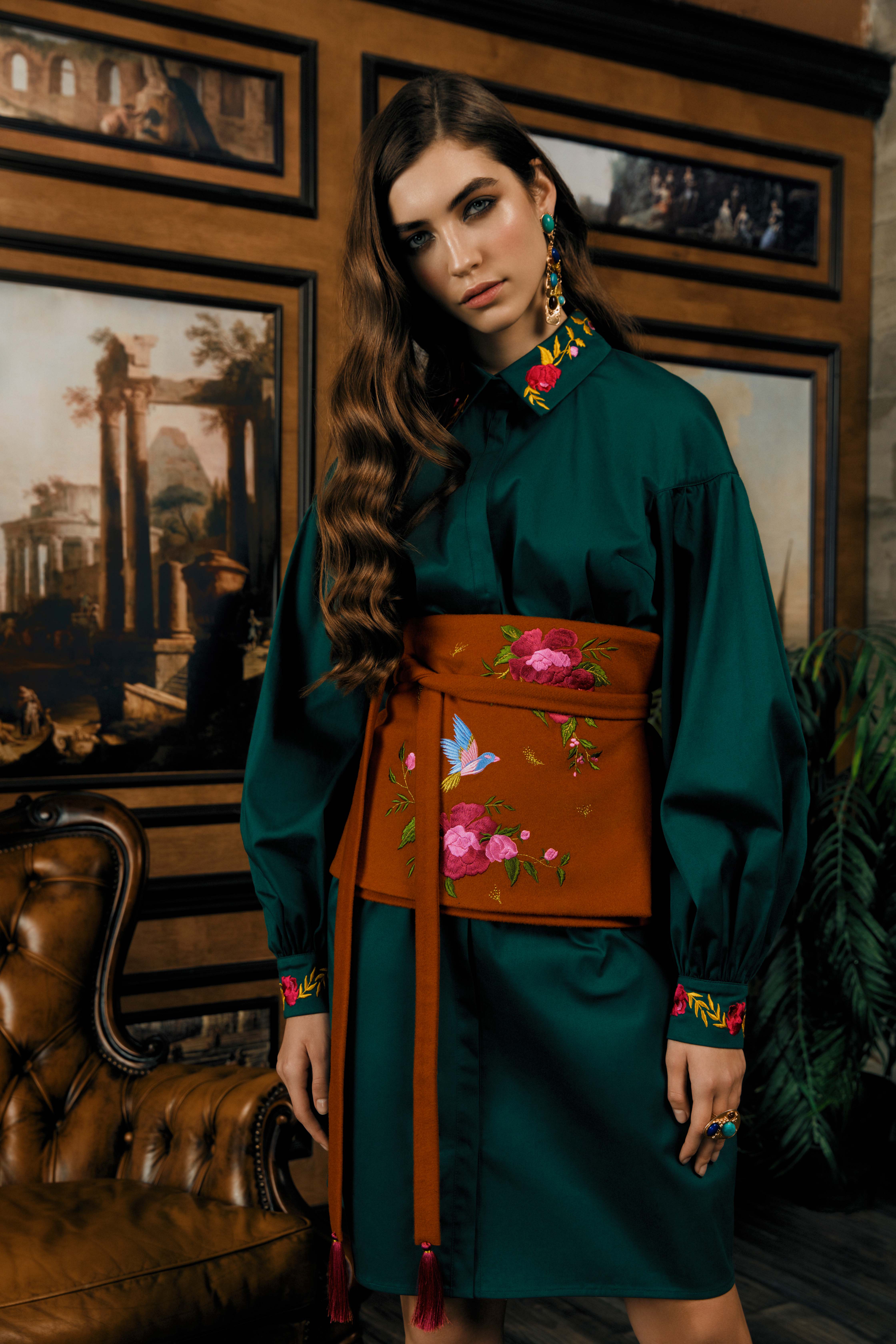 Na coleção de inverno, apostou em galhos e ramos de flores em tecidos nobres, como veludo e algodão, com bordados de flocos de neve e rosa-chá. O universo da marca é misterioso e lúdico, passando por looks joviais e fluidos. “A faixa grossa com pompom é feita com miçangas vindas da Republica Tcheca, para marcar a cintura de camisas e minivestidos, um dos temas-chave da coleção”, diz. Os tecidos são importados da Itália, mas tudo é feito na Ucrânia, com três ou quatro costureiras trabalhando em cima de cada peça.