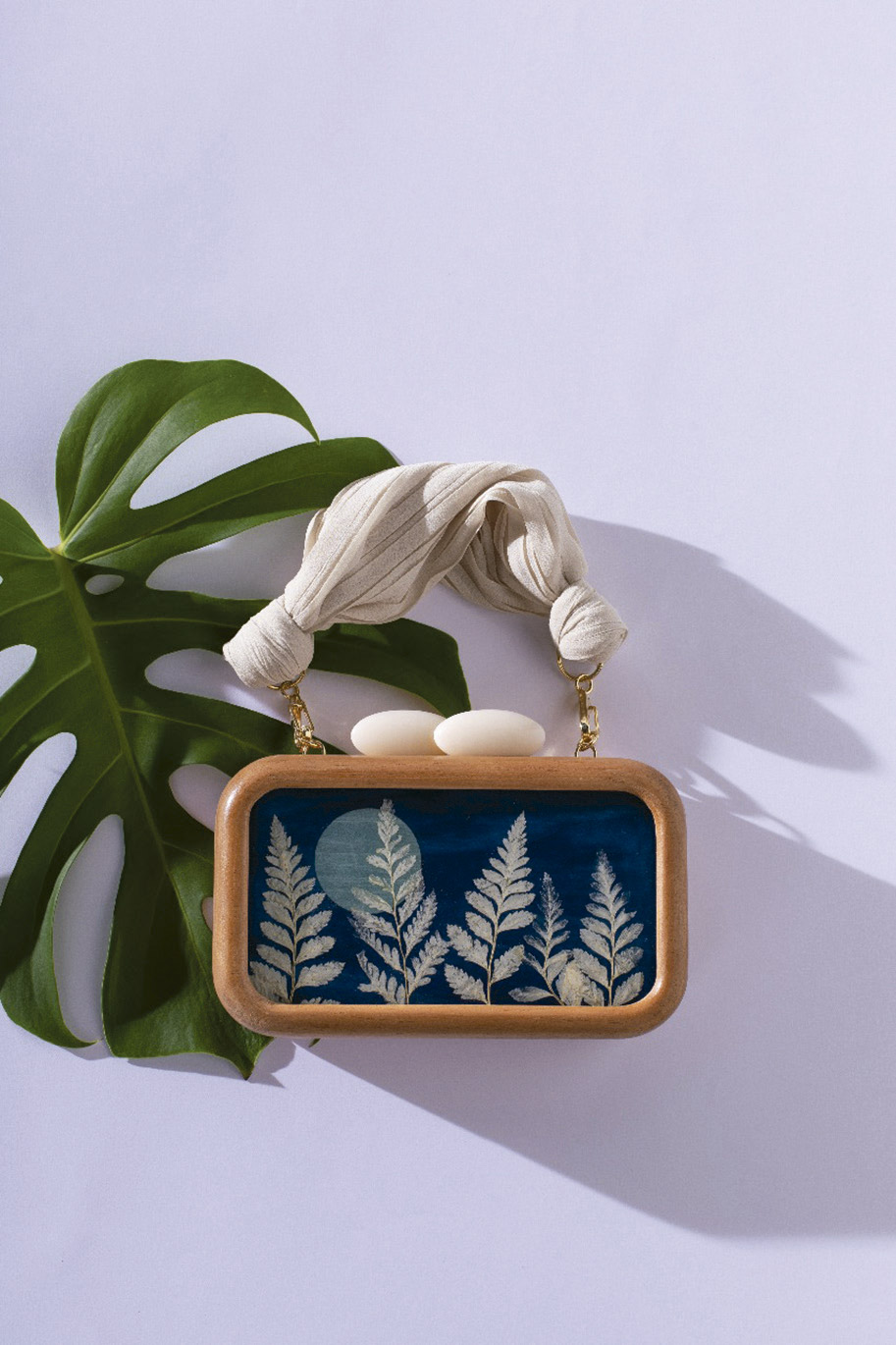 Foi a partir de plantas colhidas em suas caminhadas por parques de São Paulo que a designer Sylvie Quartara começou a coleção Nature-à-Porter para Sy&Vie, há quase um ano. As clutches feitas em madeira de reflorestamento ganham mosaicos de folhas e flores preservadas por técnicas desenvolvidas pela designer.