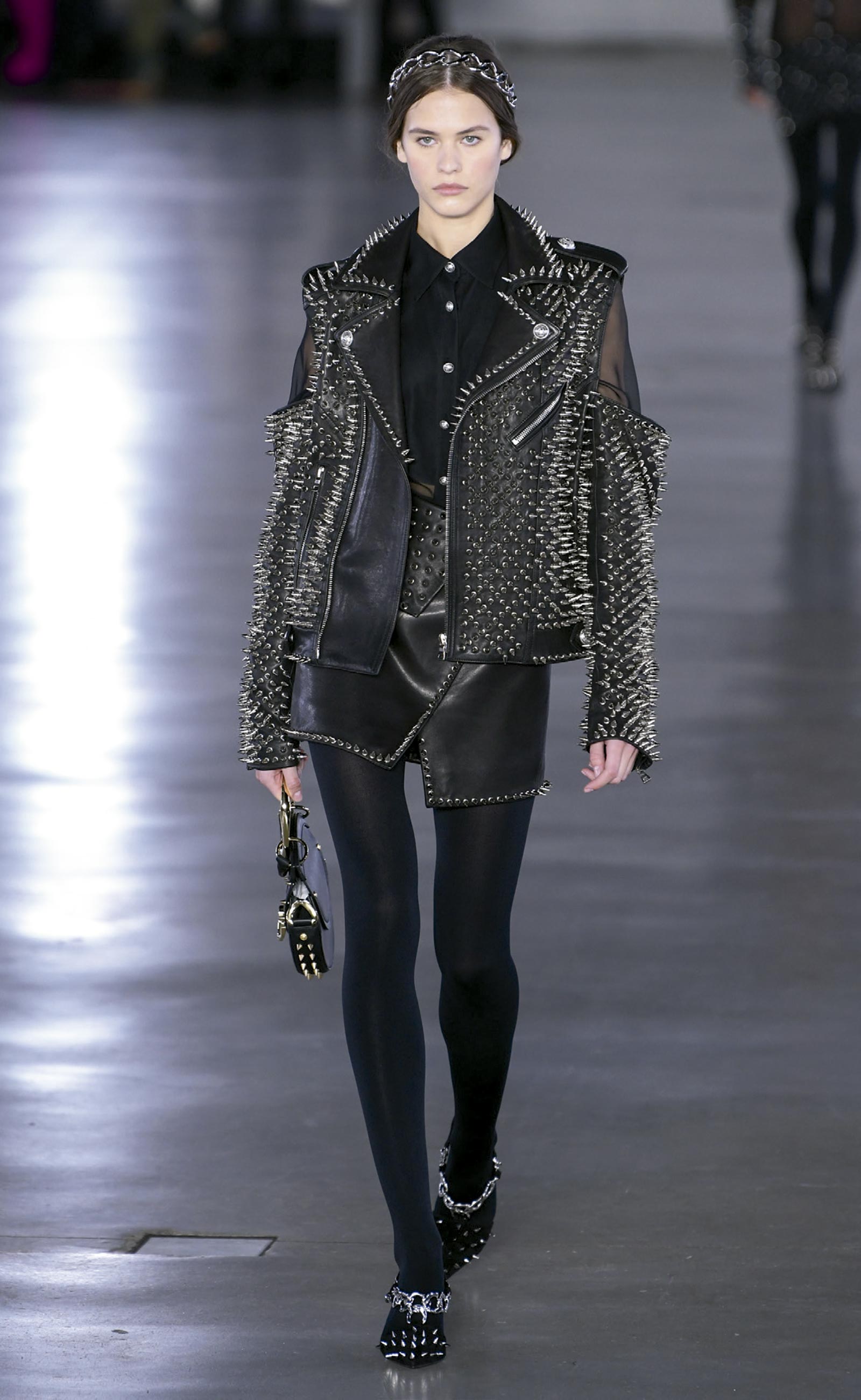 A Balmain, por exemplo, começou seu flerte pelo verão 2018 masculino e estendeu a proposta ao feminino. O forte, aqui, eram e continuam sendo as jaquetas pesadas com jeitão roqueiro que Olivier Rousteing adora. Na coleção inverno 2019/20, ele cobriu várias peças de spikes, inclusive bolsas e sapatos. Correntes viraram headpiece, o jeans foi desfiado até se assemelhar a pelo e mangas vieram destacadas dos ombros, como se tivessem sido arrancadas à força. Tudo impecável para princesas-rebeldes que desafiam o status quo conectadas à preocupação de Rousteing de falar sobre expressão e autodeterminação.