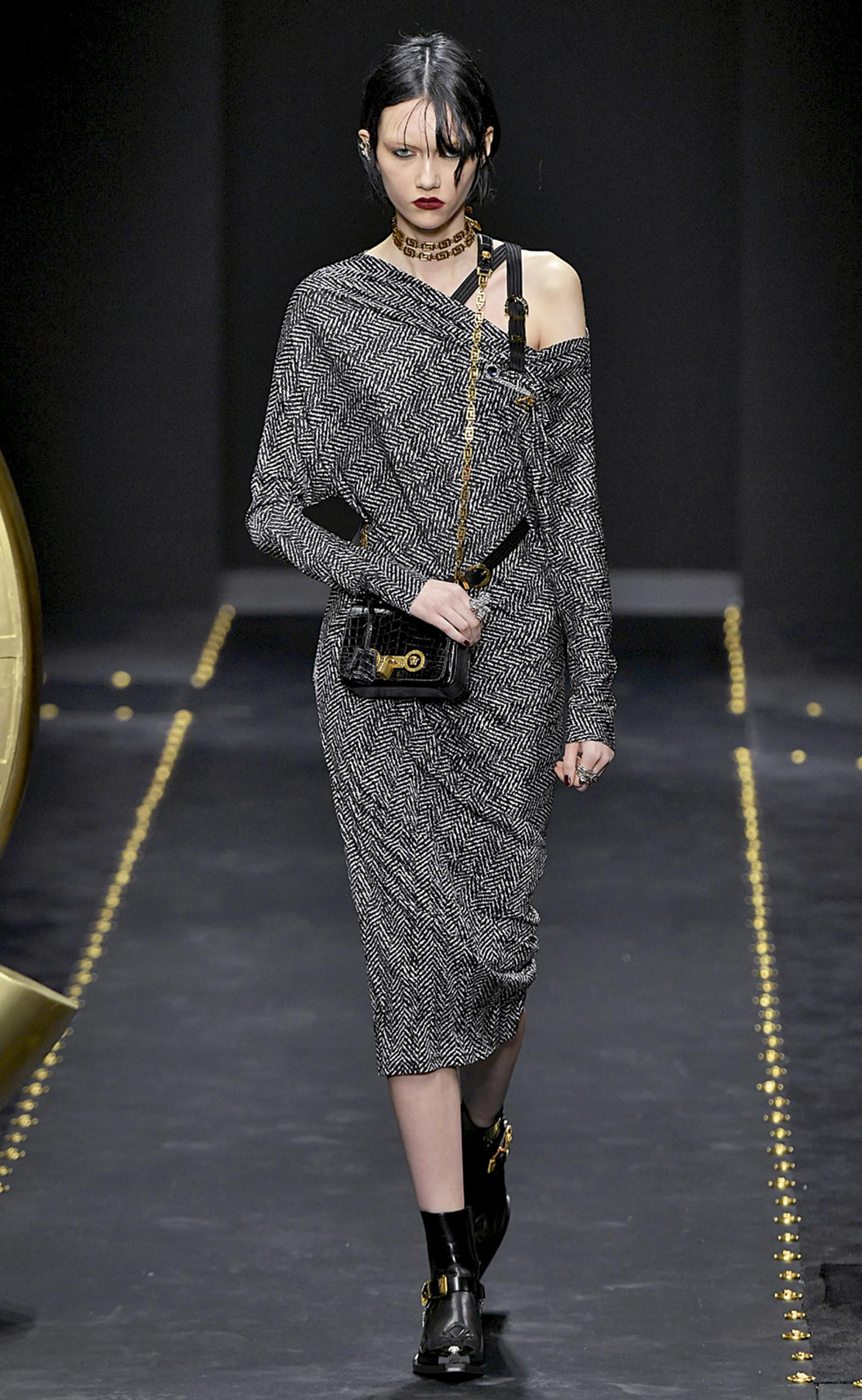 Já na Versace, o diálogo foi com o grunge em uma série de looks mais fáceis de serem assimilados pela consumidora.