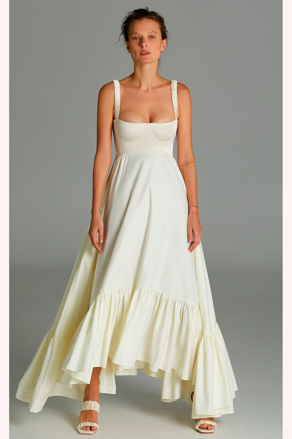 “Para um visual mais contemporâneo e despojado, procure por peças que sejam atuais e ao mesmo tempo traga as referências da época. Aposte em uma calça jeans com uma pegada oversized, vista uma camisa branca de manga longa e jogue por cima um corpete branco, de preferência os dois de tricoline. Em relação aos acessórios, uma tiara com pérolas ou pedrarias, junto de um brinco grande no mesmo material, irá compor o visual e deixá-lo moderno. Para o sapato, pode apostar em um scarpin.’’