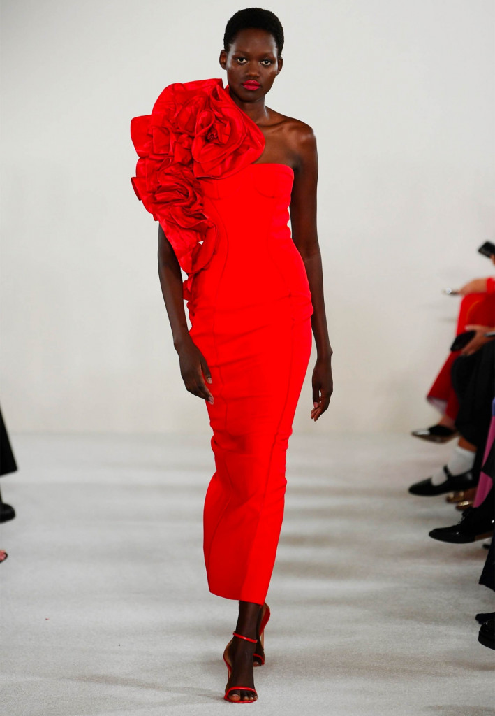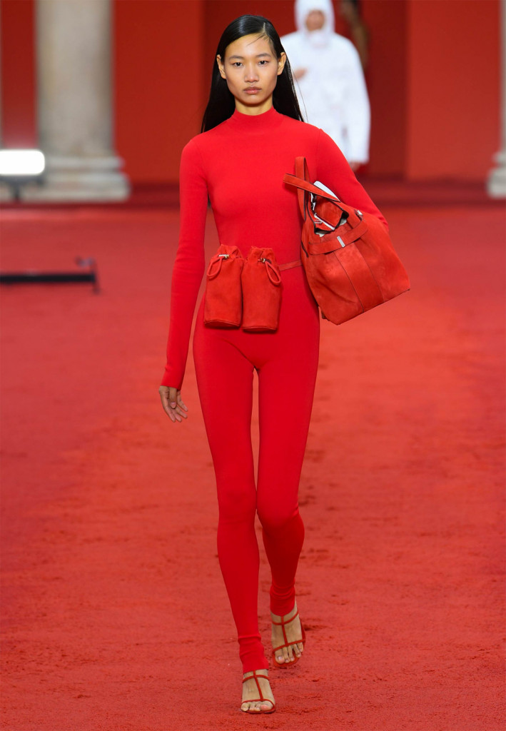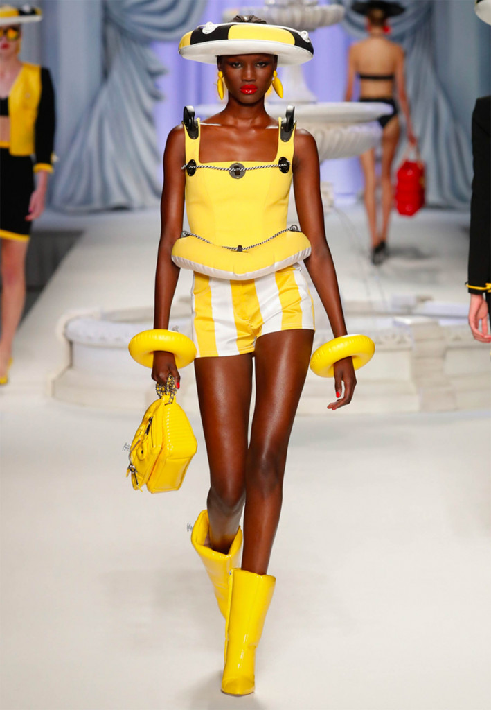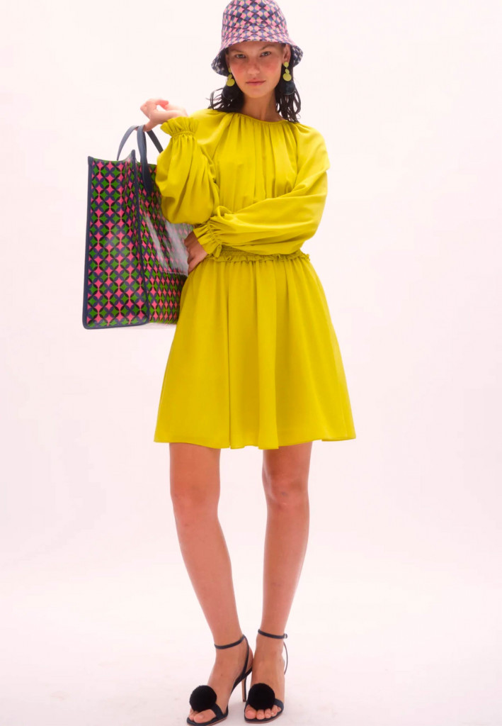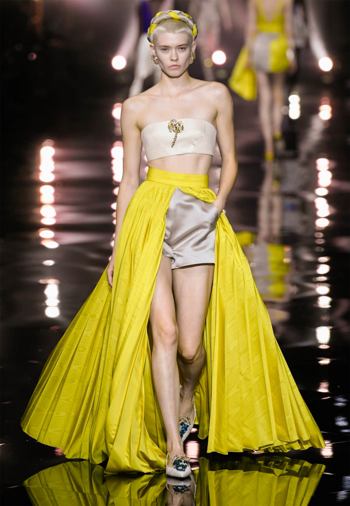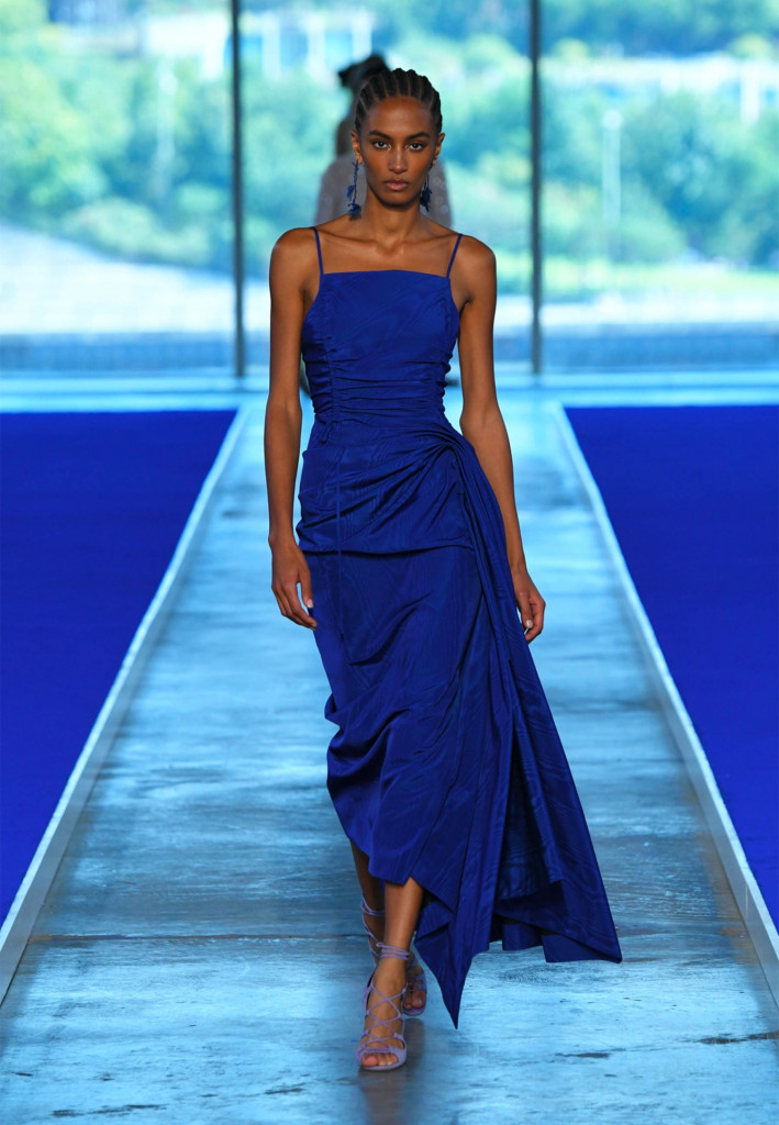 Eles apareceram principalmente em produções monocromáticas ou, em algumas exceções, combinados entre si, como no bordado com amarelo do look azul Tom Ford ou nas sandálias amarelas de Sara Battaglia. Outros designers optaram por combinar a paleta primária com acessórios pretos – mais convidativo para quem não está acostumado com cores tão intensas.