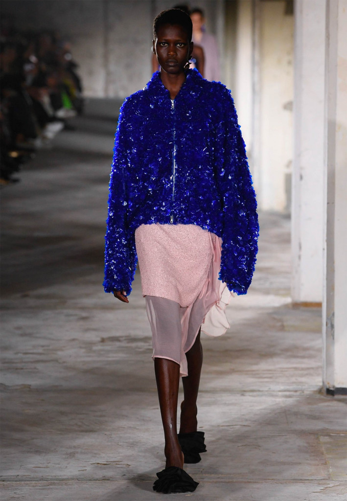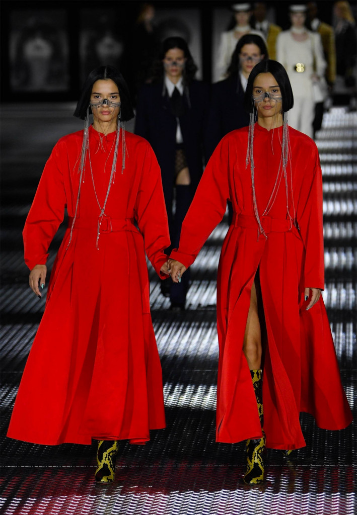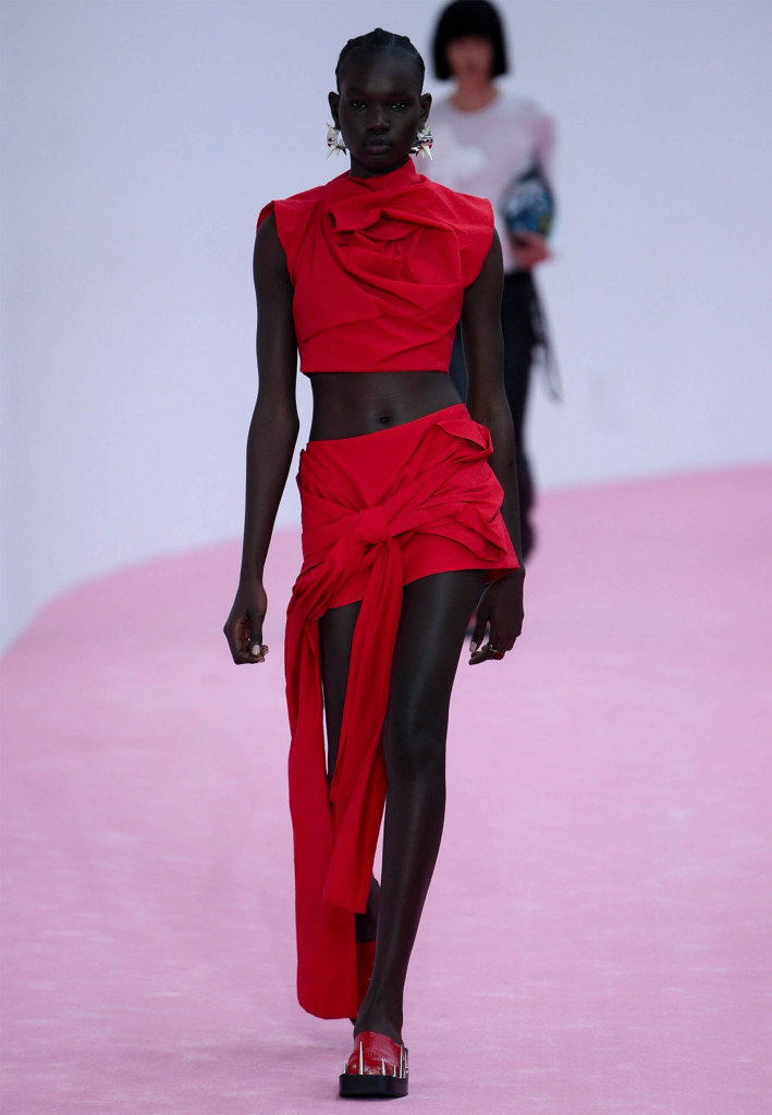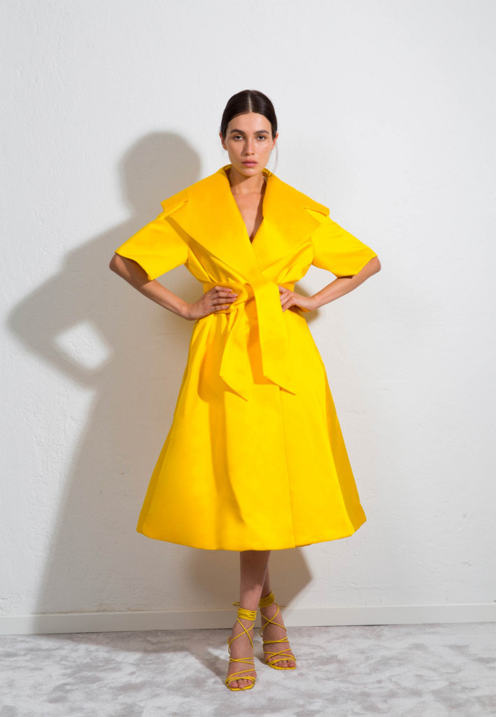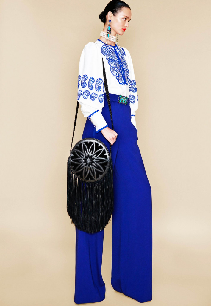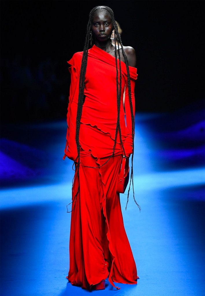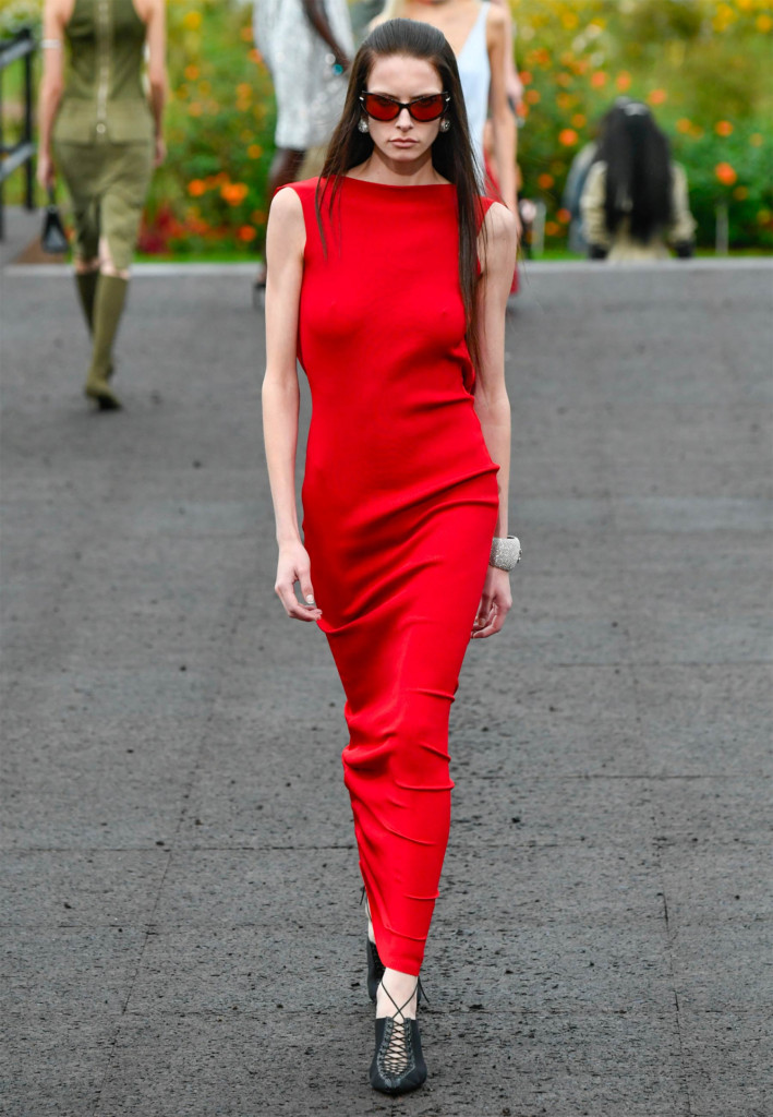 Eles apareceram principalmente em produções monocromáticas ou, em algumas exceções, combinados entre si, como no bordado com amarelo do look azul Tom Ford ou nas sandálias amarelas de Sara Battaglia. Outros designers optaram por combinar a paleta primária com acessórios pretos – mais convidativo para quem não está acostumado com cores tão intensas.