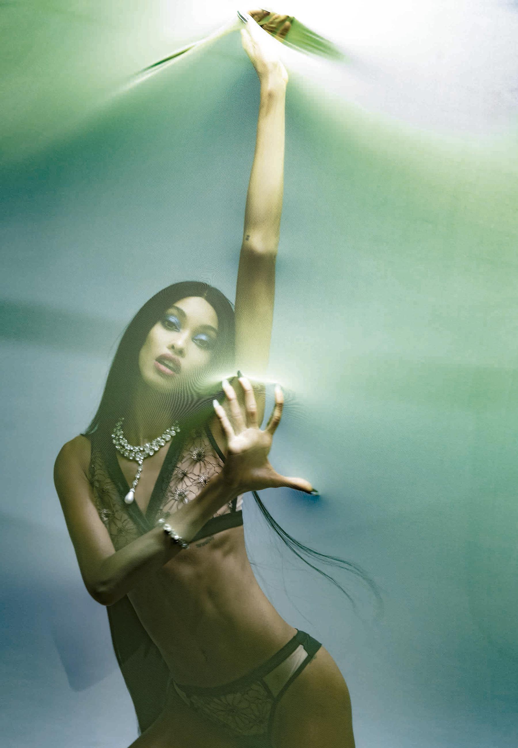 Samile Bermannelli (Mega e Elite NY) usa sutiã Intimissimi e botas Thom Solo – Foto: Ace Amir, com edição de moda de Jahulie Elizalde, edição executiva de Filipa Bleck, maquiagem de Ryan Burke e cabelo de Erol Karadag