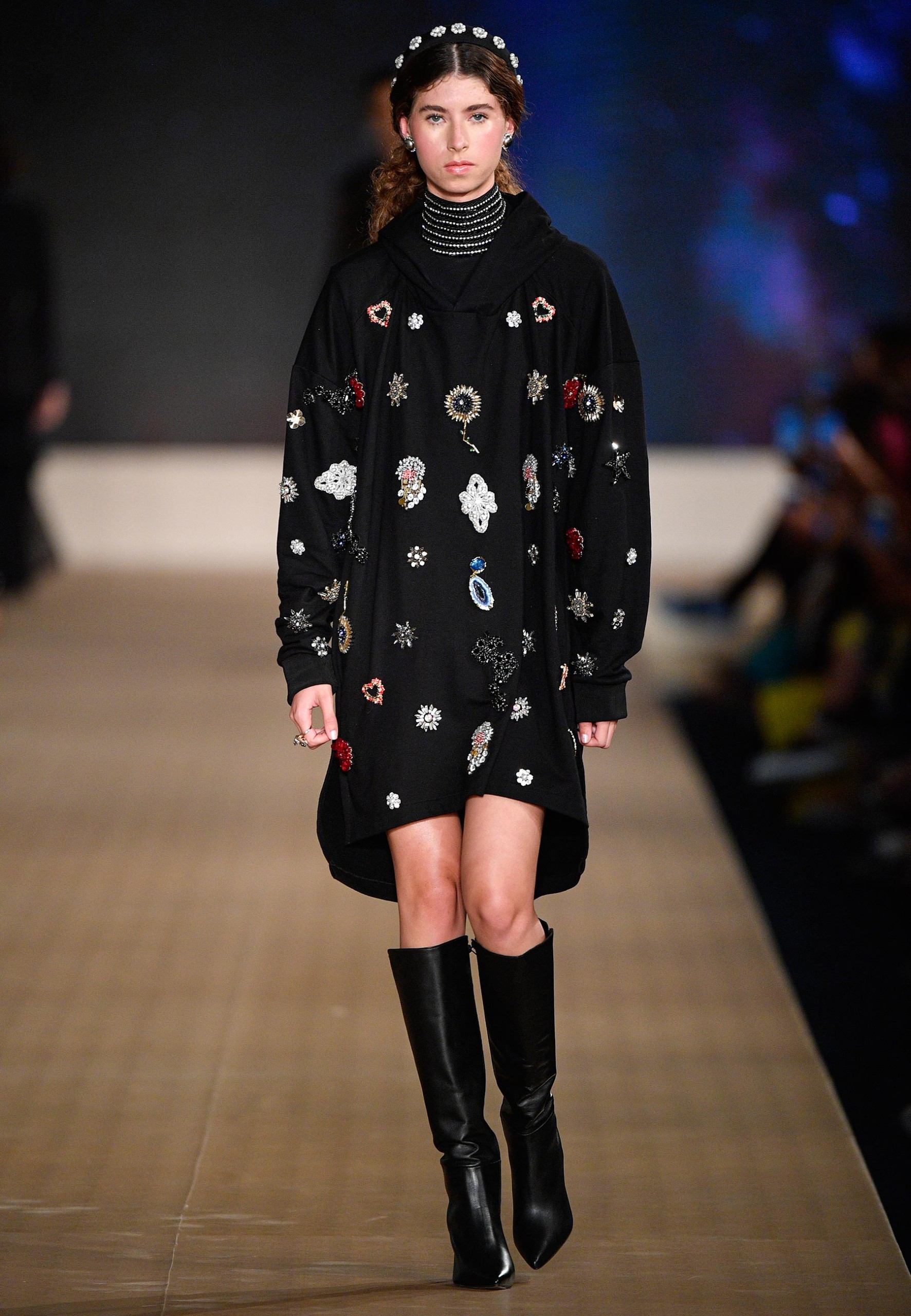 Em seu recente desfile, realizado no Minas Trend, em outubro deste ano, Denise levou para a passarela três looks de sua coleção anterior (verão 2020) repaginados com propostas para o inverno 2020. Uma calça jeans, um vestido de moletom e uma jaqueta de couro foram customizadas com novos bordados e algumas adaptações na modelagem.