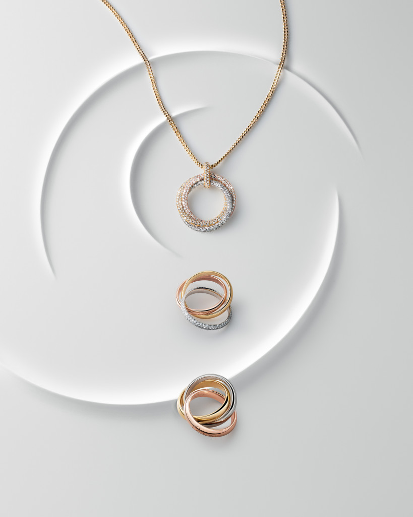 De lá para cá, Trinity segue orbitando o imaginário fashionista. Para o centenário da joia, a diretora de design de joalheria e relógios da Cartier, Marie-Laure Cérède, revisitou o design em novas edições luxuosas, lançadas entre janeiro, fevereiro e março de 2024. Em comunicado divulgado à imprensa, a designer explica que “a ideia de redesenhar a Trinity da Cartier parecia uma piada, um fato impossível, mas o desafio nos intrigou”. Como resultado, surge uma reedição do icônico bracelete XL, da era Y2K, um novo anel XL e outro, coberto por diamantes, em um jogo de vela e revela das pedras preciosas.