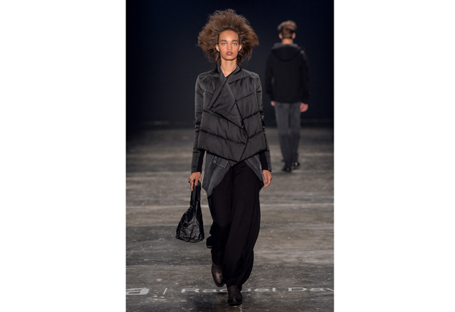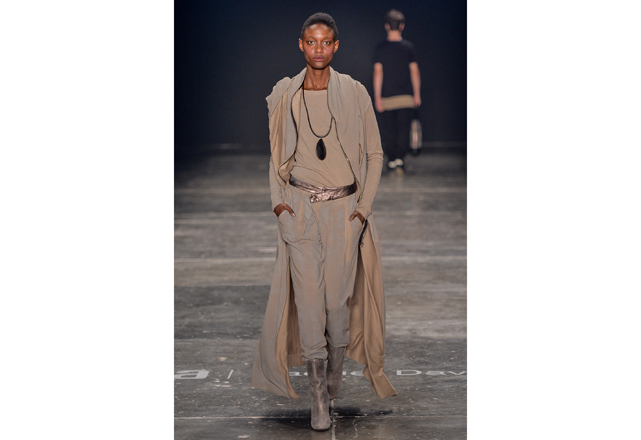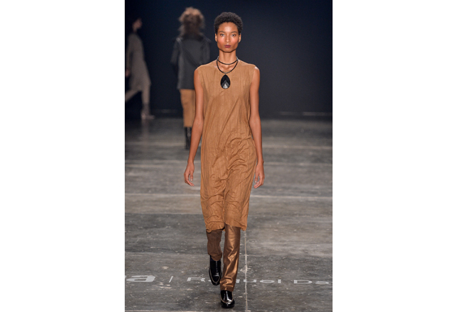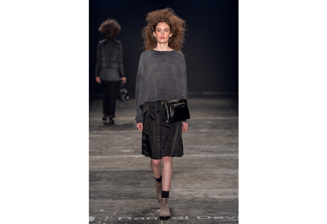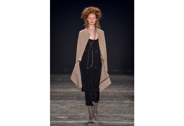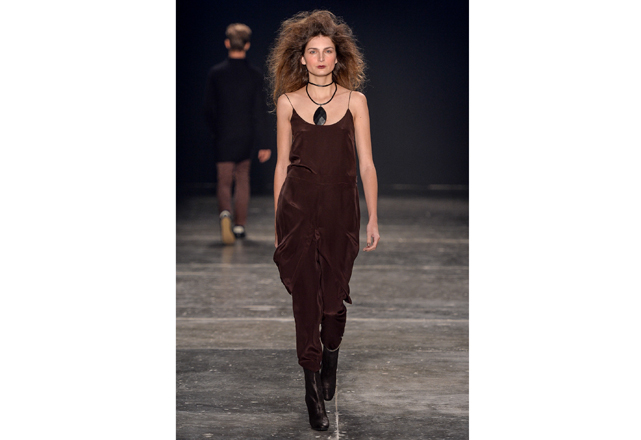 Raquel Davidowicz abriu há menos de uma semana sua primeira em Nova York. E vem das andanças pela cidade a inspiração de seu inverno: mobilidade. Prática, para ser usada na rua, sua roupa acompanha a mulher real que veste botas de neoprene para pegar o metrô. Couro, seda, lã e moletom, tudo junto e misturado, usados em camadas (atenção ao vestido usado com maxipantalona) atestam o DNA esportivo e urbano da marca. “Desfilo a roupa que vou vender, não vejo sentido em criar desejos que não vão ser comercializados”, explicou a estilista, pouco antes da apresentação. Peças desconstruídas, com zíperes que atestam sua qualidade multiuso: ora mantô, ora jaqueta para acompanhar um slipdress (vestido que vem se provando como um dos uniformes da temporada). Amassados, plissados e de diferentes texturas, o inverno da UMA é tingido de tons terrosos, preto areia e jabuticaba. Tudo para ser usado já e misturado a outras coleções da marca que não trabalha com tendências, mas com identidade.