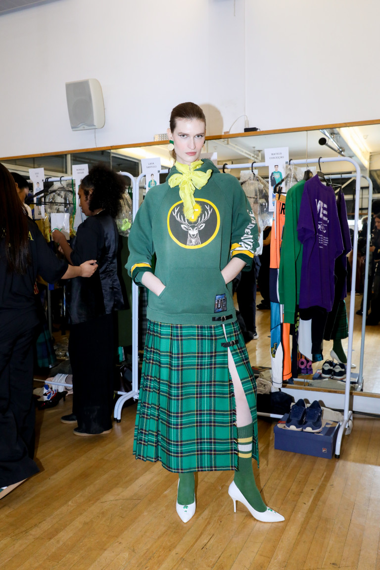 Na quadra da Academia Competition, na rua Oscar Freire, sob o voo de drones, o desfile pulsou em um hi-lo de sport e street com volumes amplos, recortes assimétricos, texturas e um mix infinito de estampas. Entre diversos truques de styling, camisas unidas por botões viraram saias, camisetas esportivas foram combinadas com peças de flanela, moletons, babados e muita renda. A paleta transitou entre brancos e off-whites, tons intensos de verde, royal, amarelo e vermelho.