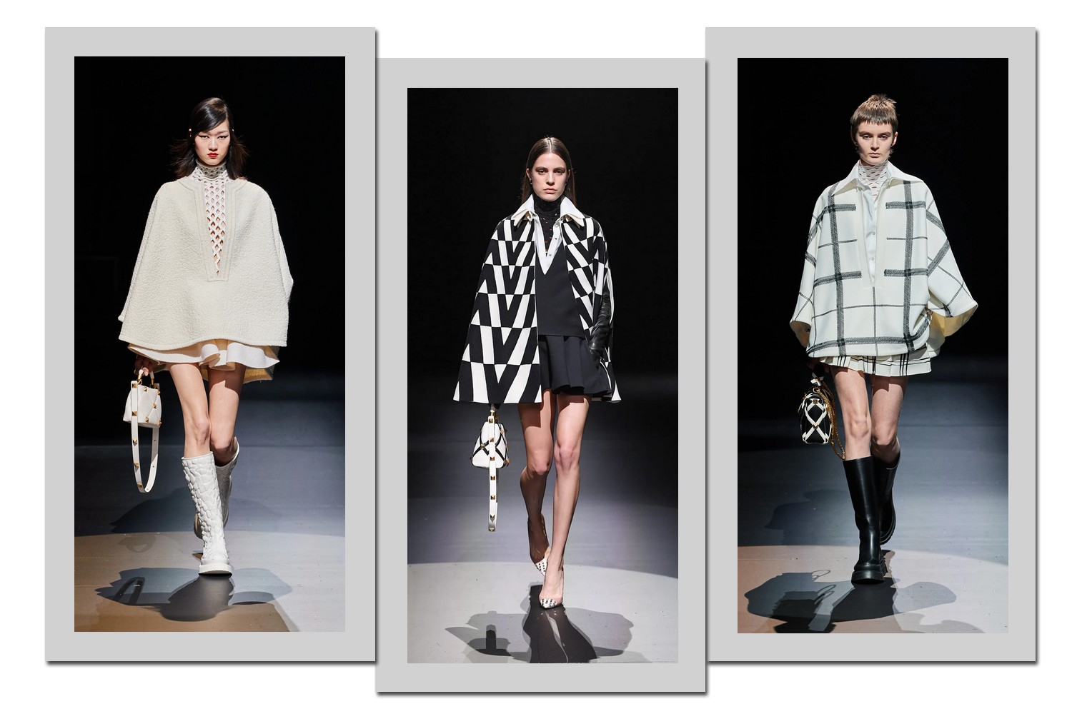Criando camadas, as capas são uma das maiores apostas do inverno 2021 da Valentino. Grandes e curtas, lisas e estampadas, com características que remetem a ternos… Há opções para todos os gostos.
