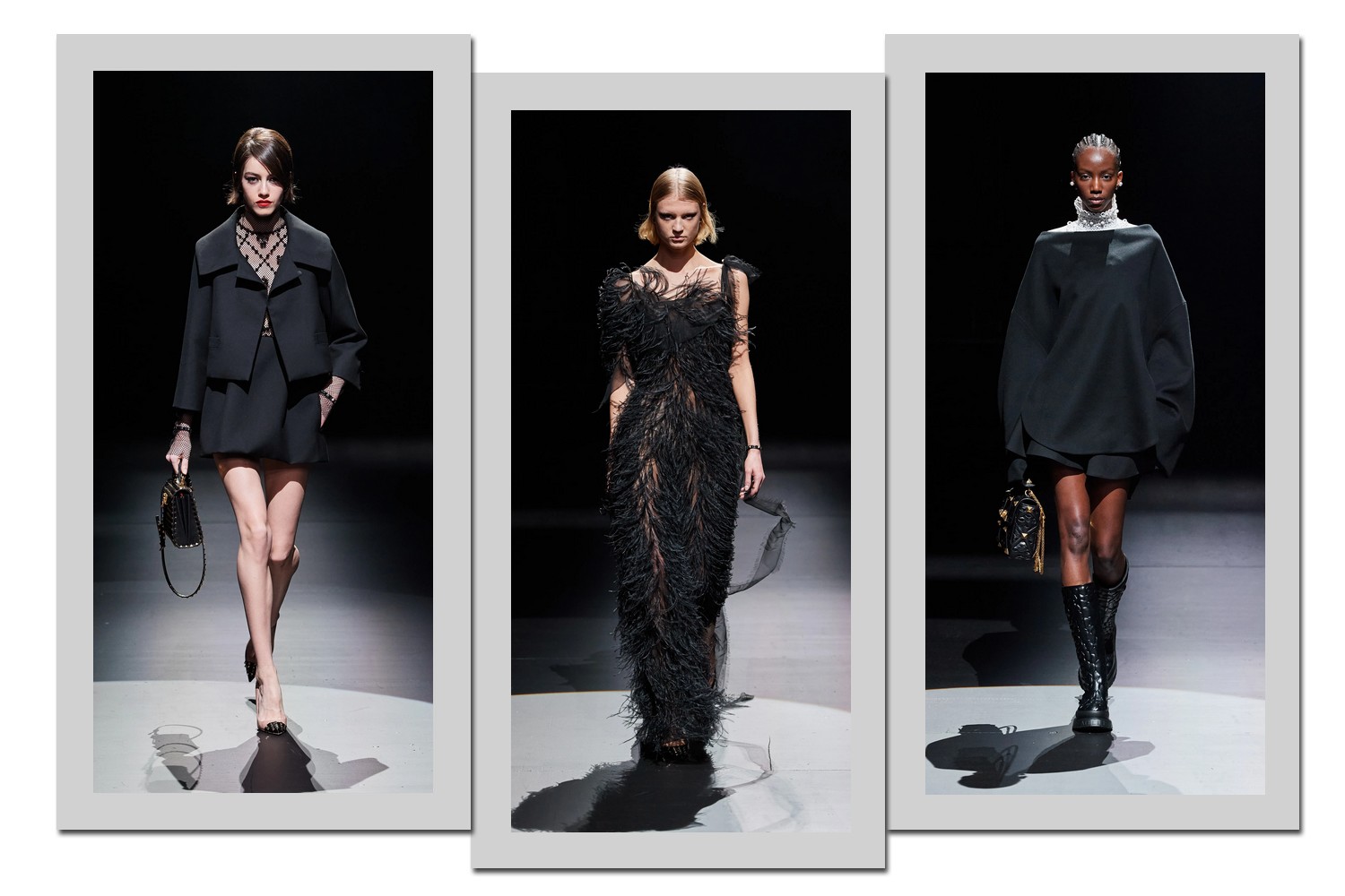 Para a maison, os opostos sempre se atraem. A mistura de brilho e opaco, curto e longo, esportivo e luxuoso é sempre garantida. Com mãos de pluma, Pierpaolo Piccioli transforma o elegante em street style. Mas, não só. Revira baús e desconstrói longos preciosos em vestidos descomplicados em renda, rede ou chiffon.