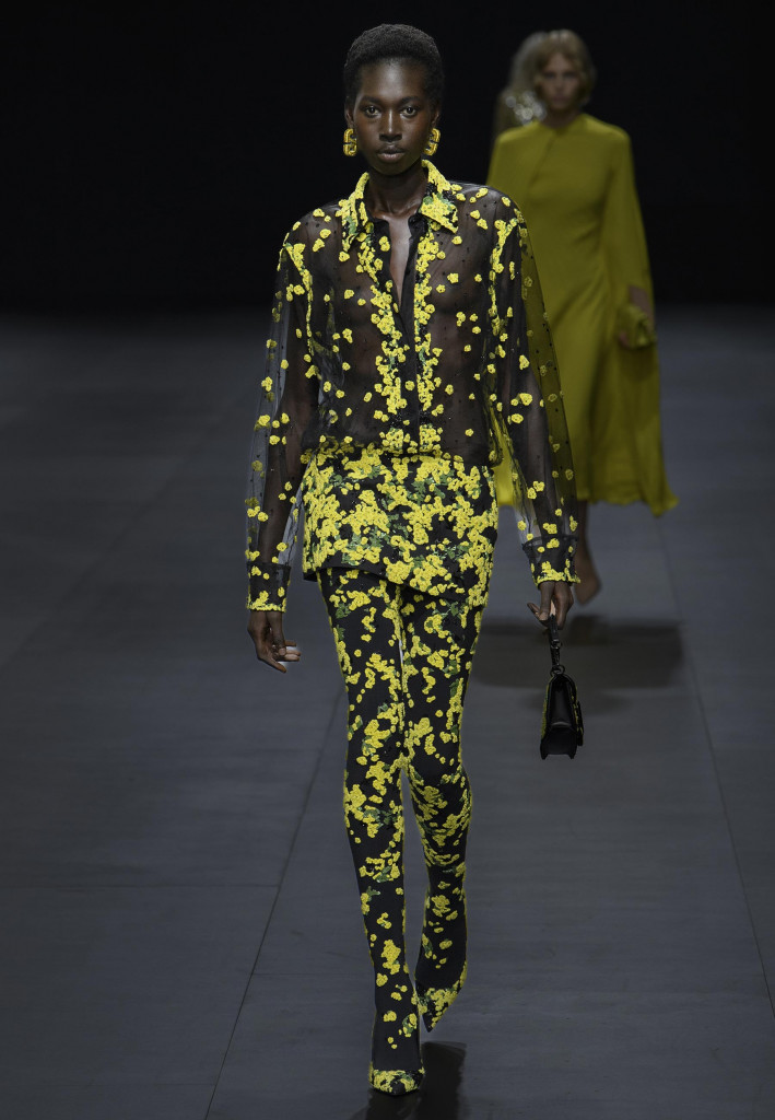Depois de um inverno monocromático, o verão 2023 da Valentino intercala brilhos, pontos de cor e alfaiataria precisa. Pierpaolo Piccioli maneja a tesoura como poucos. Volumes inesperados subvertem peças clássicas. Uma simples camisa, nunca é apenas uma camisa. E um vestido pode ser um acontecimento. Cortes, recortes e decotes revelam o corpo com ousadia. Do curto ao longo, do minimalismo ao maximalismo, o diretor criativo da label esculpe looks prontos para qualquer red carpet que se preze. Bravo!
