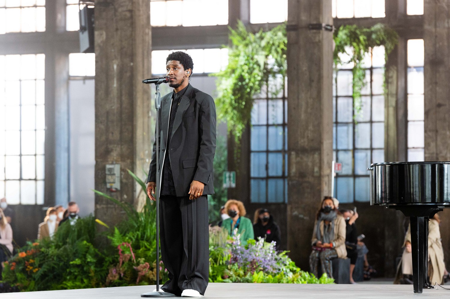 Foi impossível assistir ao desfile e não se apaixonar por Labrinth, que cantou acompanhado de um pianista e dois backing vocals.
