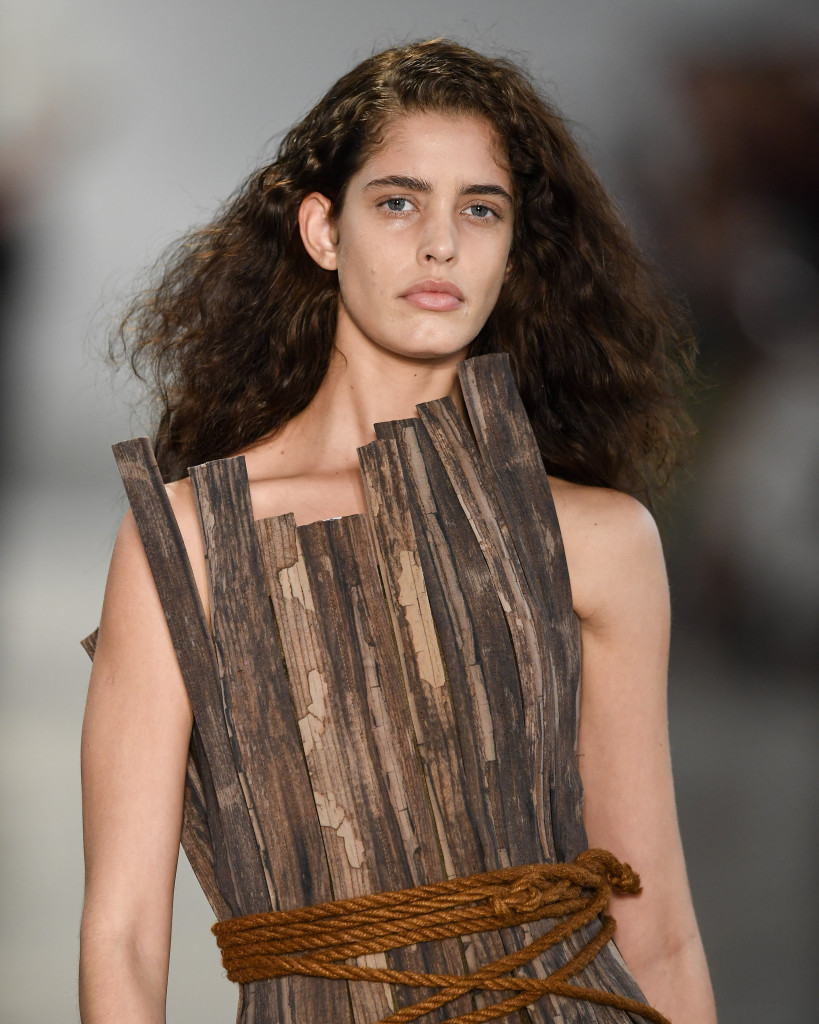 Marco Normando estava emocionado quando a apresentação terminou – e com razão. Essa foi sua aguarda estreia no São Paulo Fashion Week e veio carregada daquele frescor que muito se procura mas pouco se acha na moda brasileira hoje em dia. Bastante por isso, ele e seu sócio, Emídio Contente, se tornaram as nossas “estrelas do Norte”. Na passarela, fica fácil entender o apelido. Peixes amazônicos, de fauna e alimento, viraram estampas e acessórios, assim como as casas de palafita, erguidas sobre os rios, ganharam homenagem nas padronagens de madeira em vestidos “barbatanados” de lã e seda. “É um jogo de estruturas e levezas”, contou Marco nos bastidores, também mostrando as jutas de Castanhal, no Pará, que transformou em bermudas e calças. Muito usadas em sacas de café, mais pareciam jeans aos olhos desatentos – “são uma espécie de denim ecológico”.