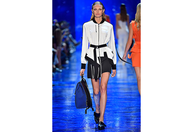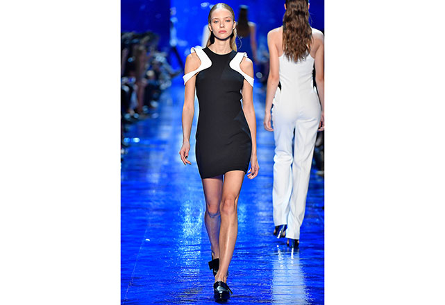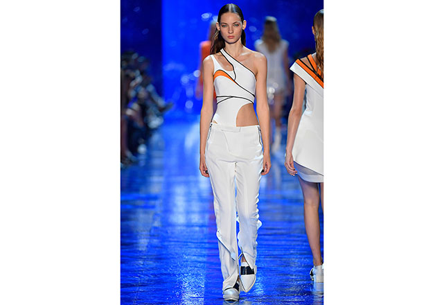 Mugler vai até o fundo do mar e encontra na sensualidade das sereias a inspiração para o seu verão 2017. Em clima oitentista, a passarela é inundada por vestidos bem justos, recortes, fendas poderosas e sobreposições de tecidos que criam um interessante mix de cores e texturas. Além disso, a alfaiataria trabalhada por David Koma ganha novas interpretações e faz bonito na apresentação.