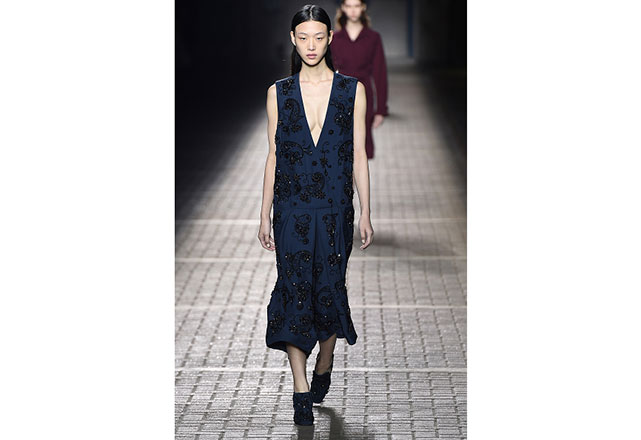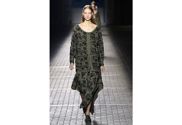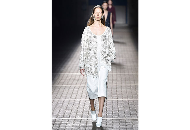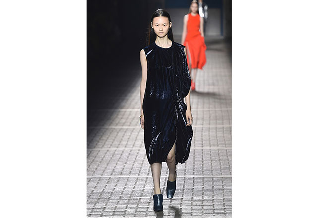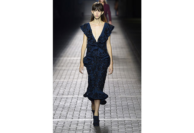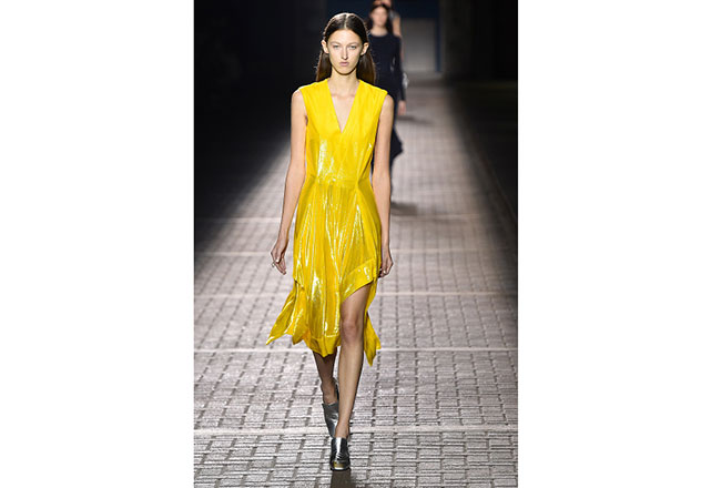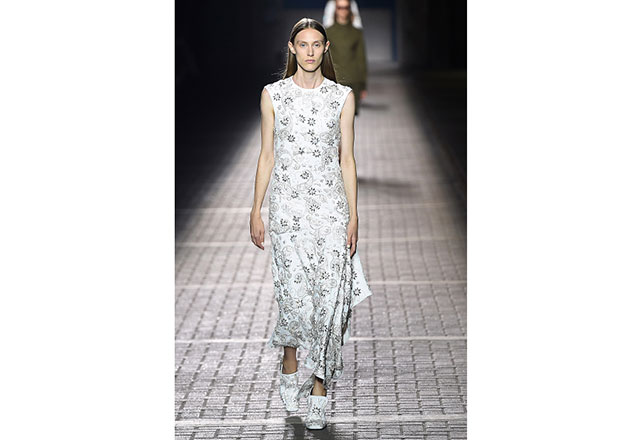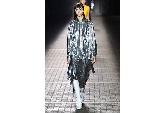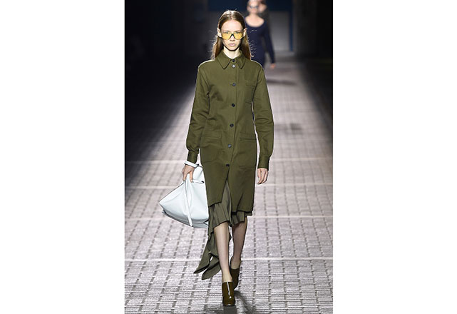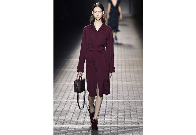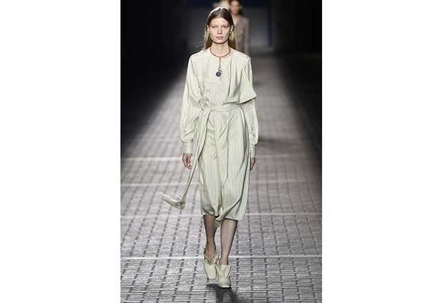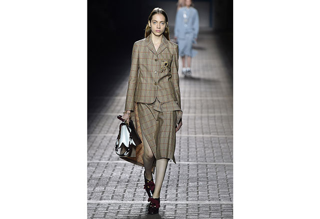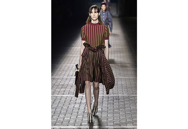 A Mulberry London apresenta um verão 2017 recheado com looks de alfaiataria moderna, listrada, com babados na diagonal e assimetrias e recortes. A segunda parte da apresentação fica mais monocromática e minimalista, com direito a um look inteiro prateado com pegada futurista. Destaque para as maxiclutches e sapatos de bico quadrado.