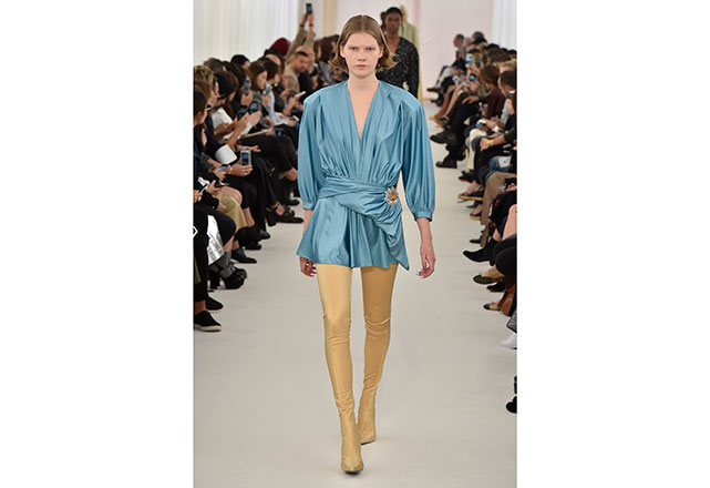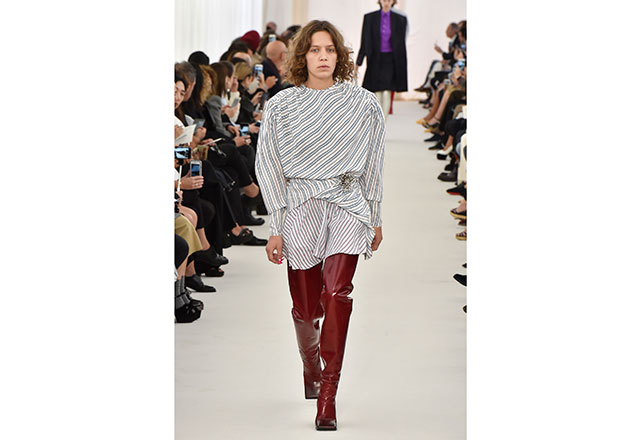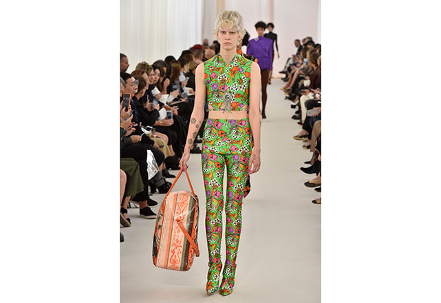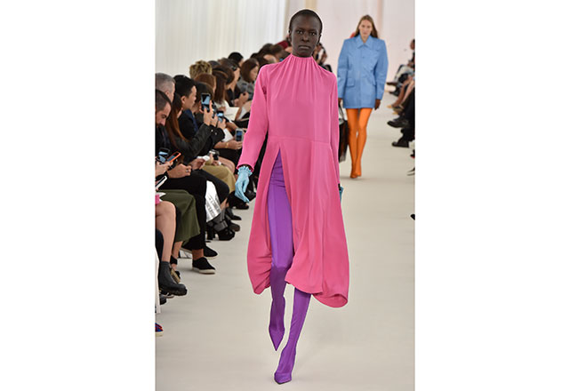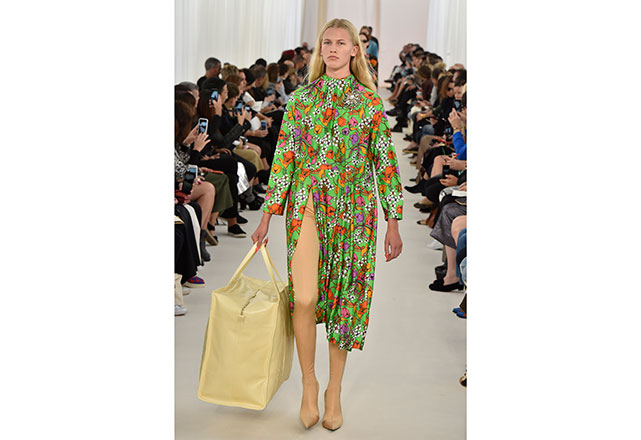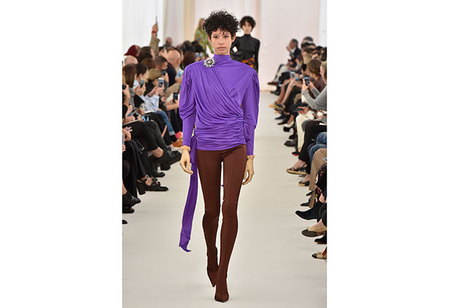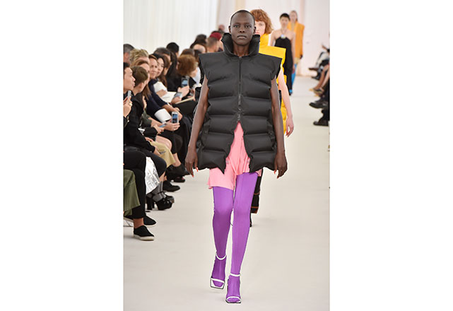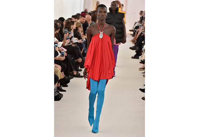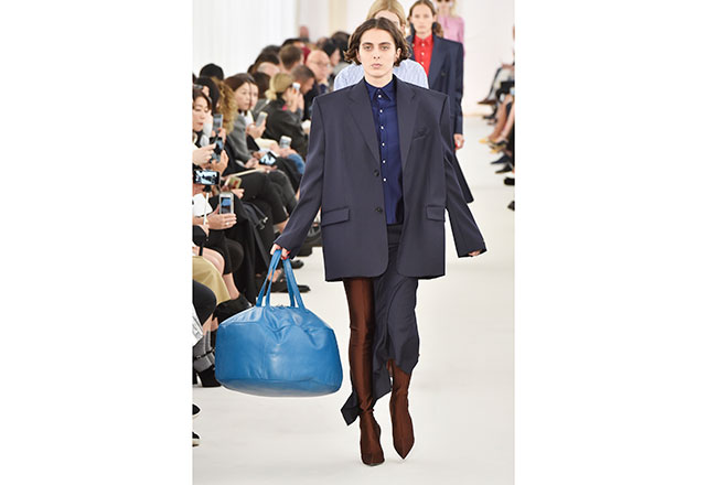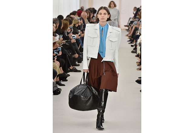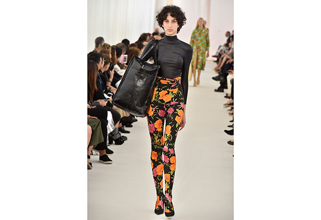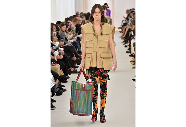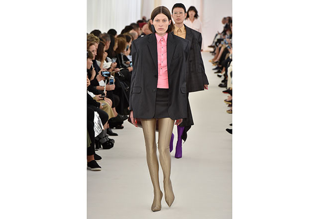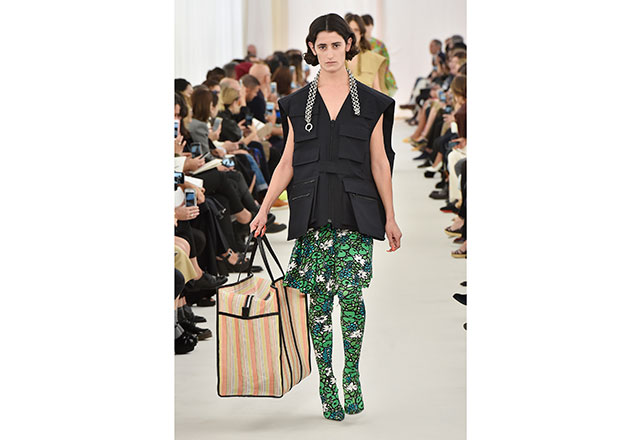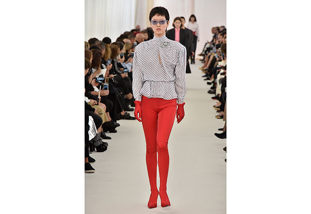 Após uma estreia bastante comentada na última temporada na Balenciaga, Demna Gvasalia tornou o desfile da grife um dos mais aguardados pelo mundo fashion. Para o verão 2017, o estilista retoma elementos de seu último trabalho e traz a tradicional alfaiataria da marca com muito volume oversized nos ombros, uma cintura ajustada e looks com silhueta ampulheta com ar oitentista. O ponto de partida da coleção foi o mundo do fetiche e a passarela é recheada de peças de látex, couro, meias e calças em cores vibrantes, vestidos colados ao corpo, estampas florais e casacos com toque esportivo. As bolsas surpreendem pelo tamanho e parecem verdadeiras malas de viagem!