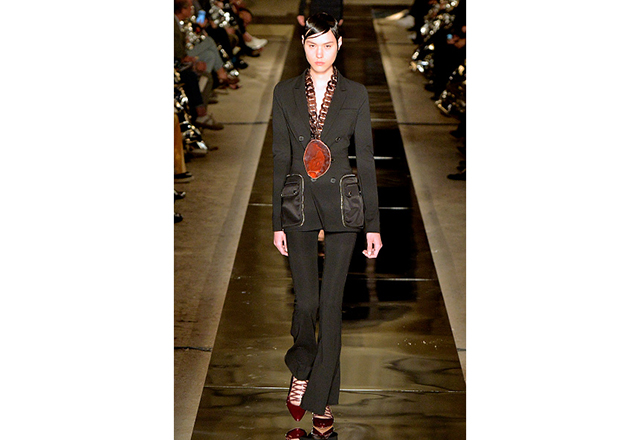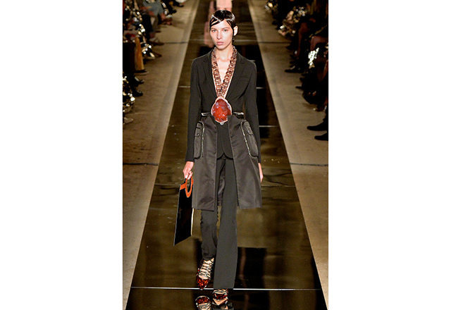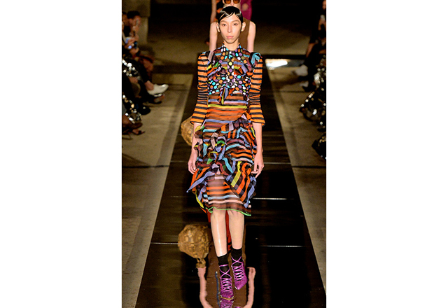 Numa locação incrível ao ar livre, na Grande Galerie de L’ Evolution du Muséum National, Riccardo Tisci apresentou uma coleção concisa e bem editada, inspirada na silhueta e nas estampas geométricas dos anos 70 – os colares com grandes pingentes de lâminas de pedras brutas se reproduziam nas estampas, o que proporcionou um efeito óptico psicodélico. O verão 2017 da Givenchy abusou de cores fortes em listras e sobreposição de estampas, além de uma alfaiataria utilitária. Tudo a ver com as vontades de agora.