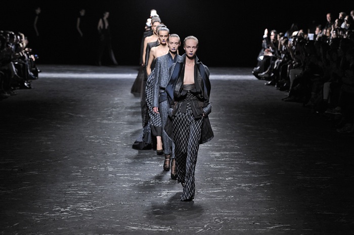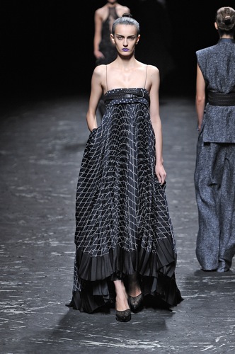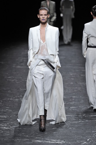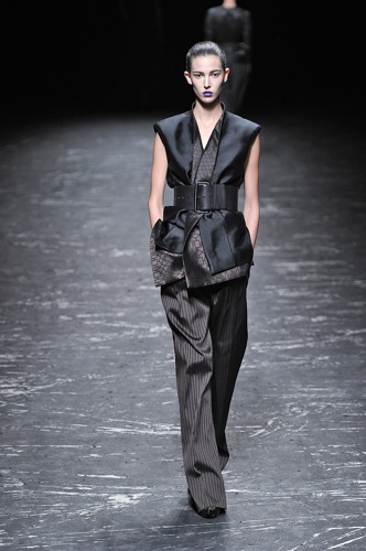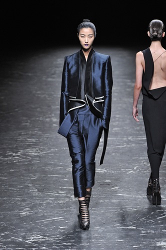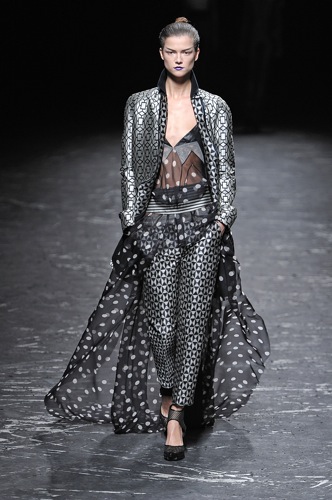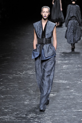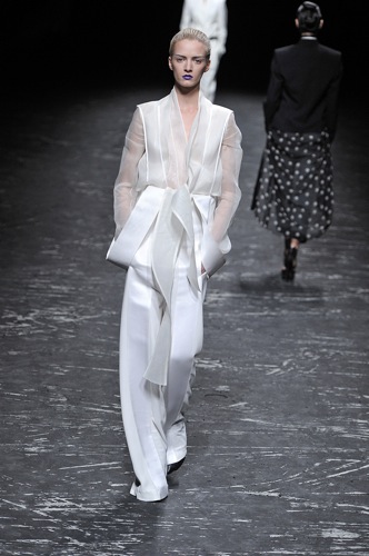 Na última temporada de inverno internacional, Haider Ackermann era um dos nomes apontados como possível diretor criativo da Christian Dior. O posto acabou sendo ocupado por Raf Simons. Sem se abalar, o colombiano segue exercitando suas melhores qualidades, as de criar lindas roupas, com os melhores materiais, num elegante duelo entre masculino e feminino.