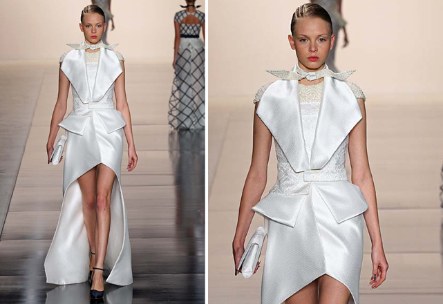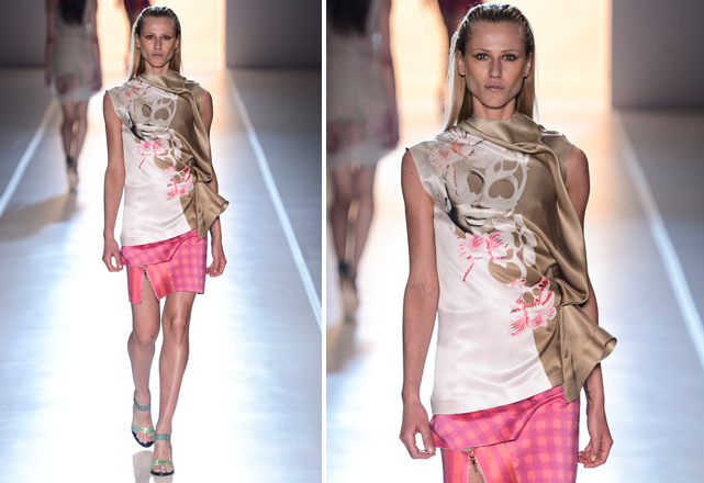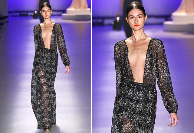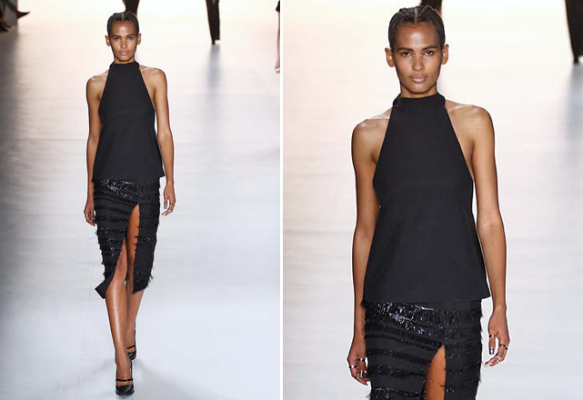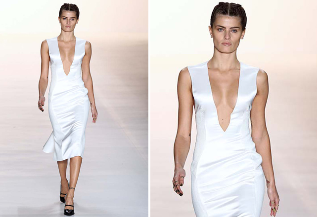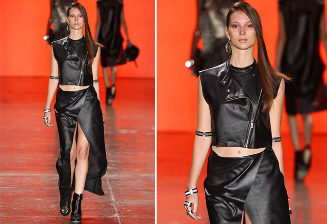 Na Ellus, as fendas aparecem na parte da frente de saias longas de couro, revelando as pernas quase que por inteiro. Uma abertura similar surge também no desfile da Acquastudio – em vestidos brancos, bem femininos –, assim como na coleção da Tufi Duek, que aposta em saias lápis decoradas para deixar as pernas de fora.